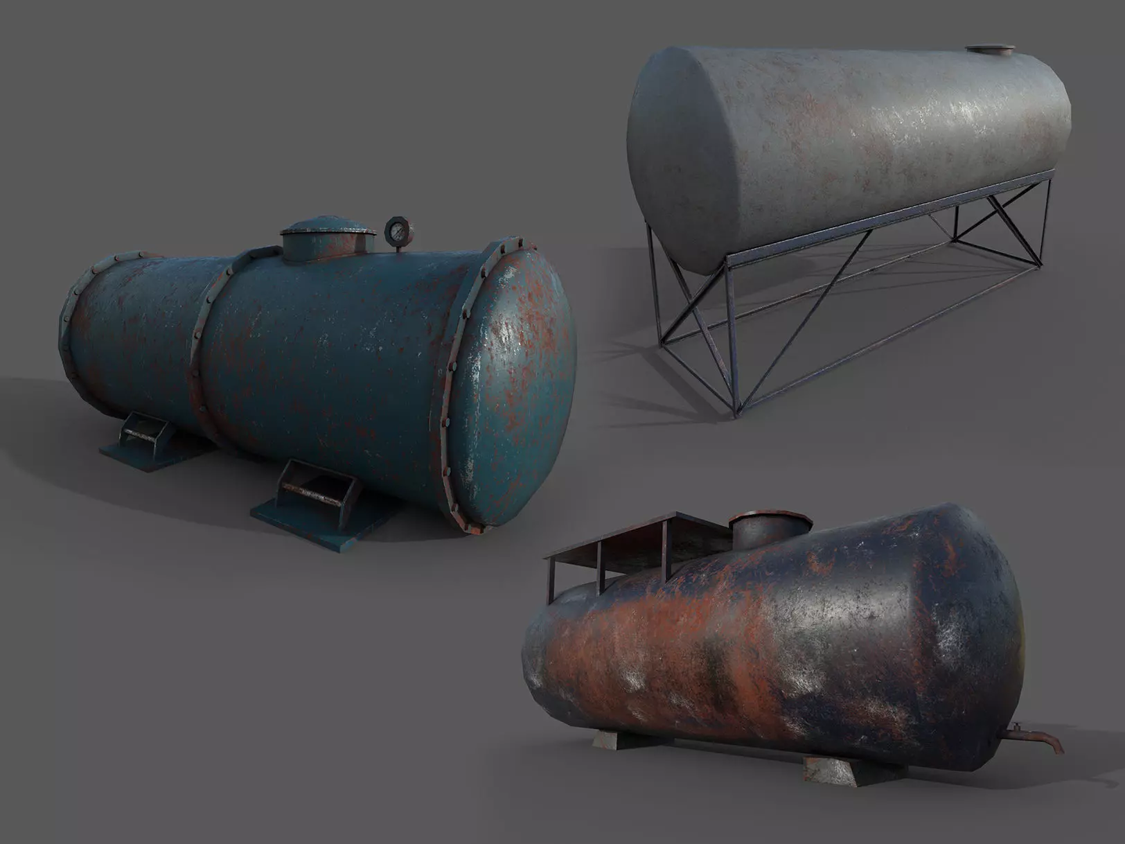Collection of container tanks. They are old, they are rusty and they perfectly fit in Your desolate environment. You can hide behind them or use them as old environment feature.