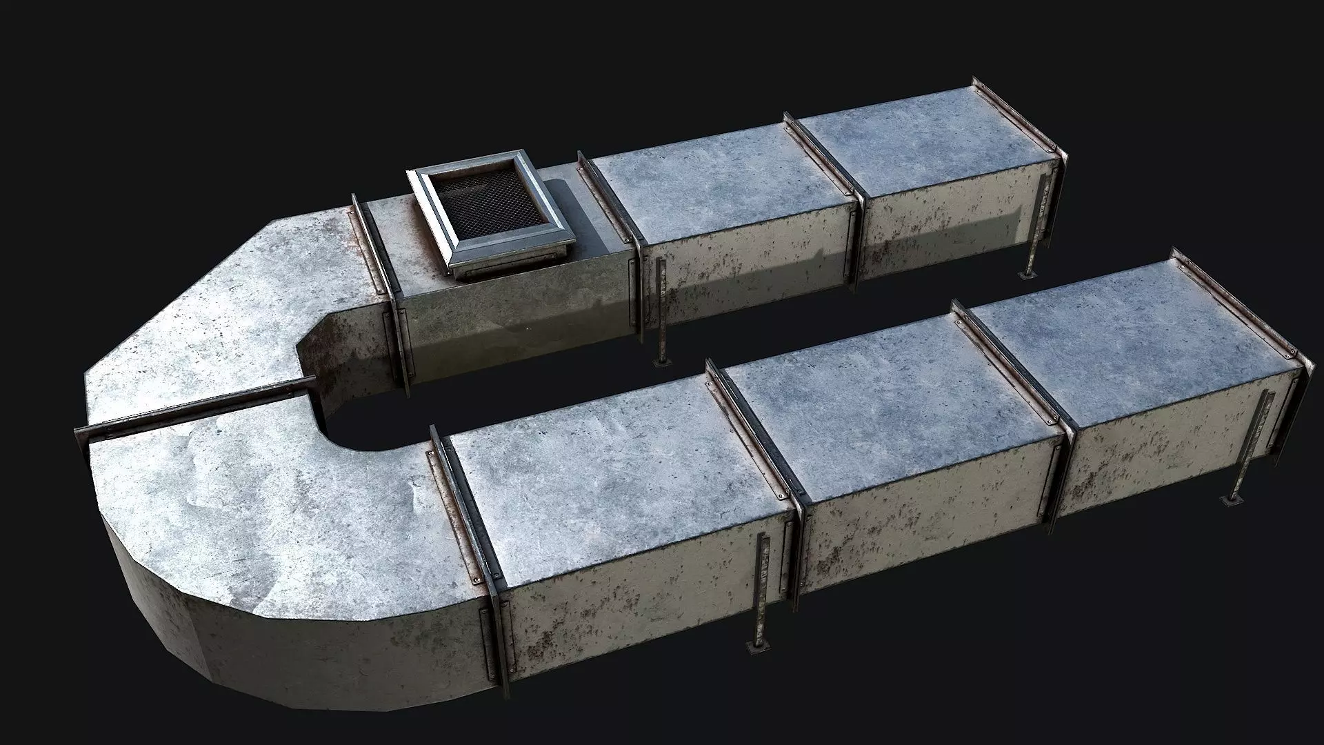 Venvilation Set metal structure with pipe in middle Low-poly 3D model