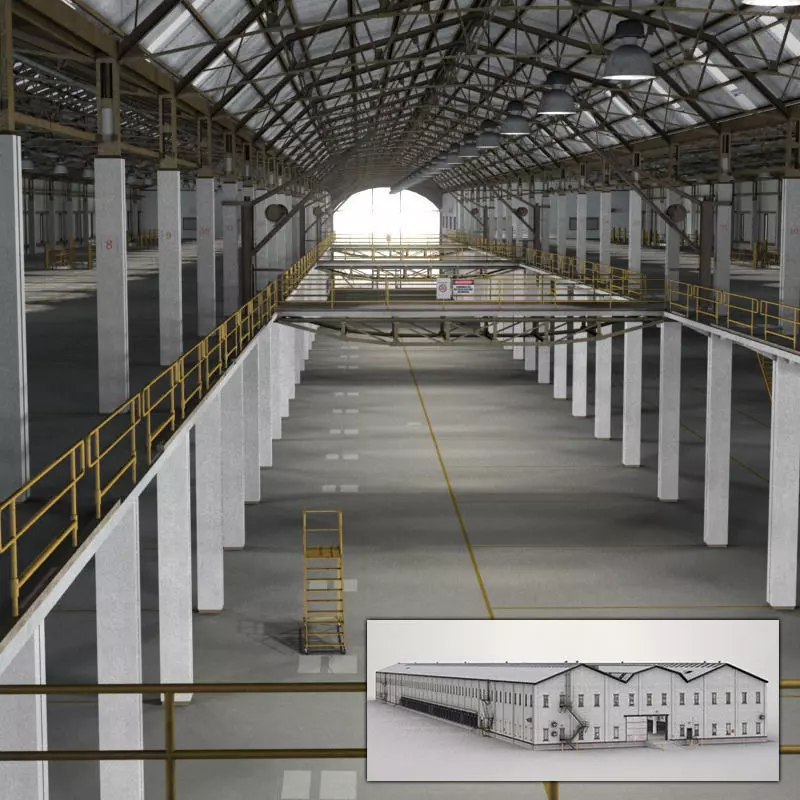 Huge warehouse with interior and exterior.