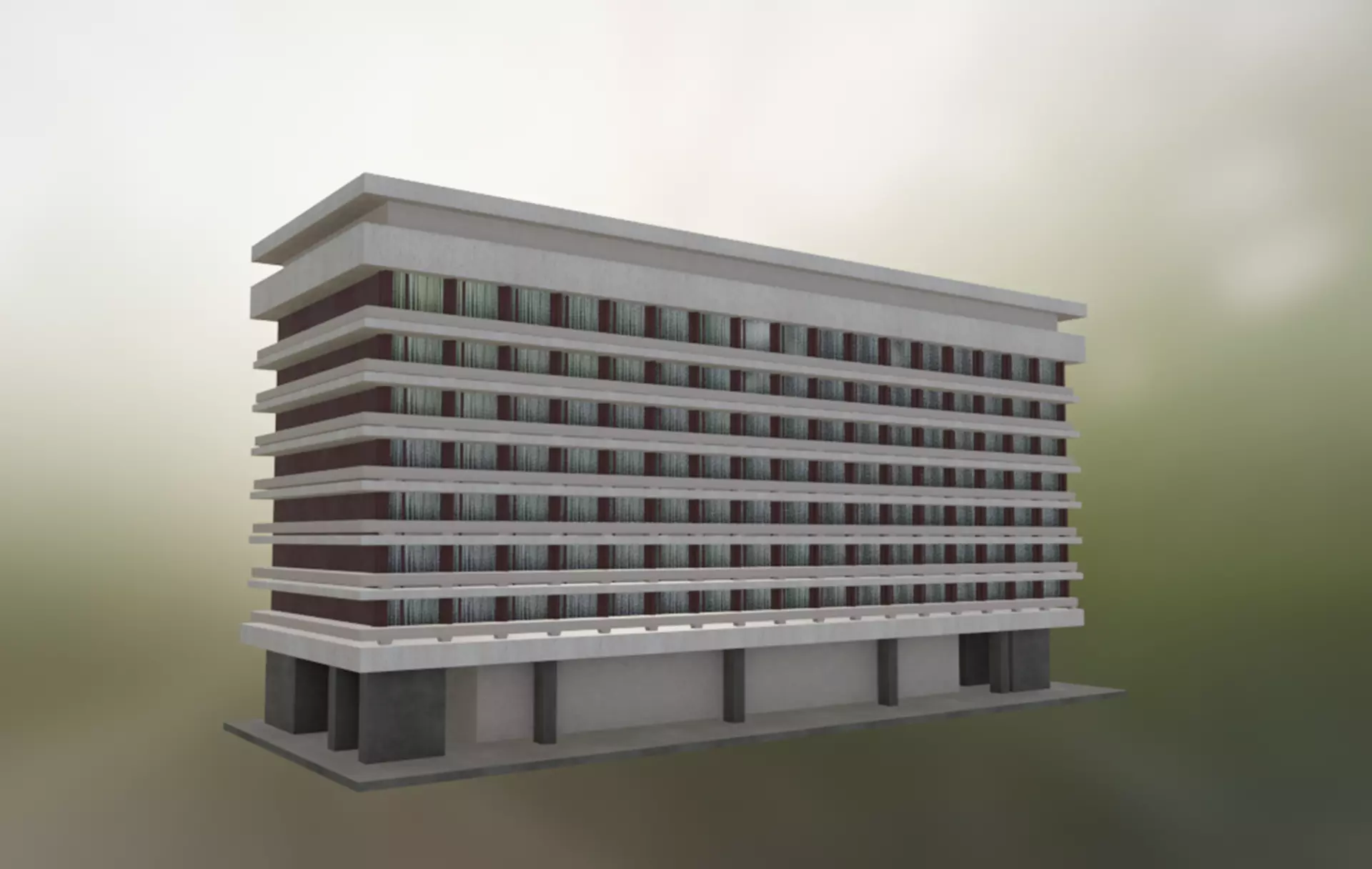 High quality mid poly 3D model of the ARO Palace Hotel in Brasov, Romania, one of the most recognizable modern landmarks in the city center.