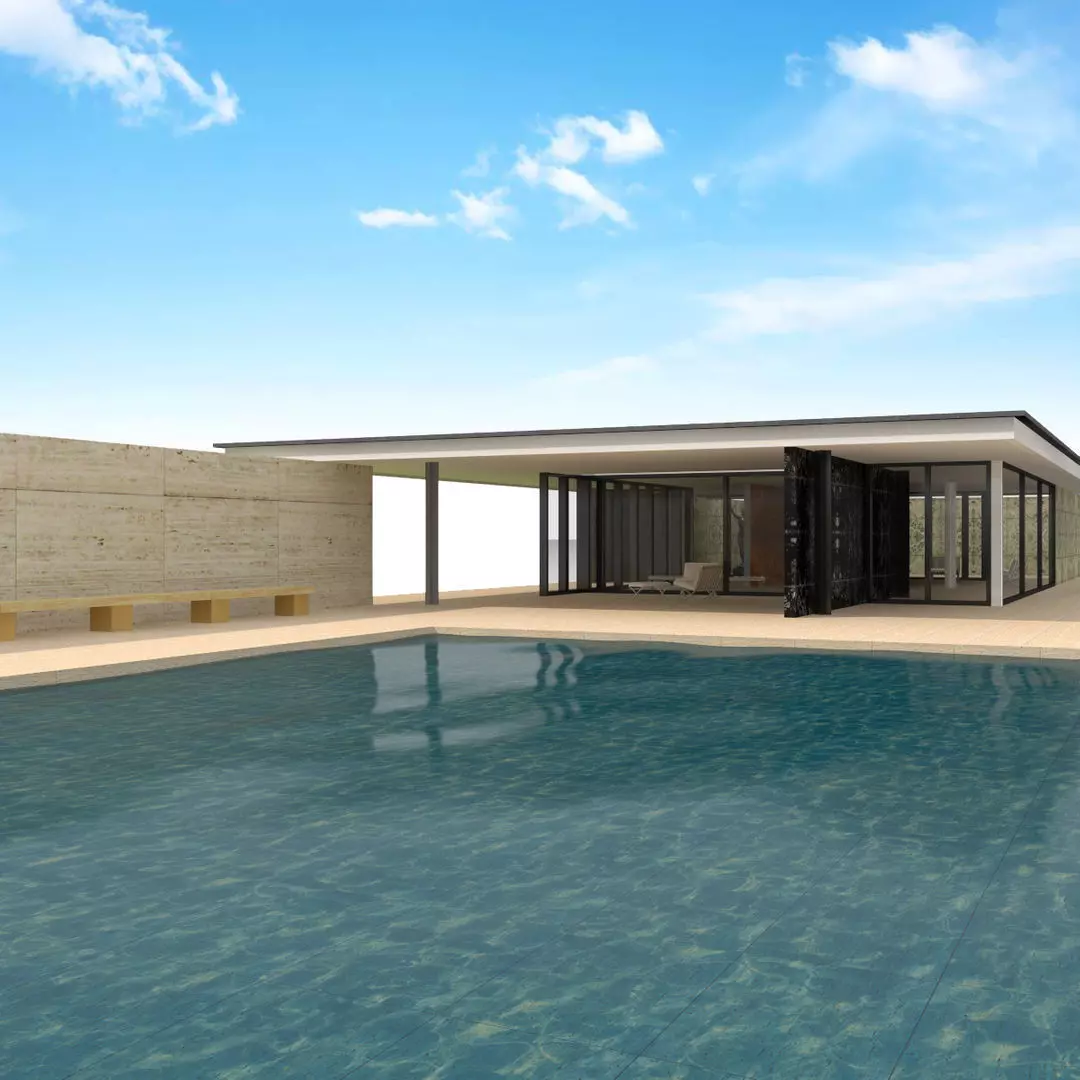 Detailed 3D model of Barcelona Pavilion designed by Ludwig Mies van der Rohe and Lilly Reich , an important building in the history of modern architecture