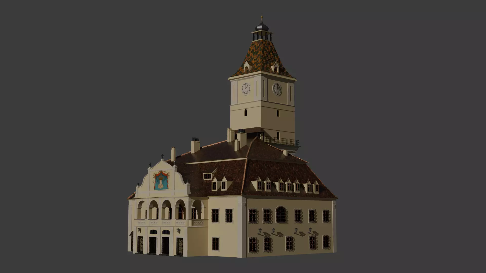 High quality mid poly 3D model of Casa Sfatului in Brasov, Romania, the town’s iconic historic landmark originally developed from a medieval watchtower into the city’s town hall and civic center beginning in the early 15th century. This model places strong emphasis on historical accuracy, faithfully representing the building’s complex architectural evolution, from its early Gothic origins through Renaissance and Baroque modifications, up to its present role as the Brasov County Museum of History.