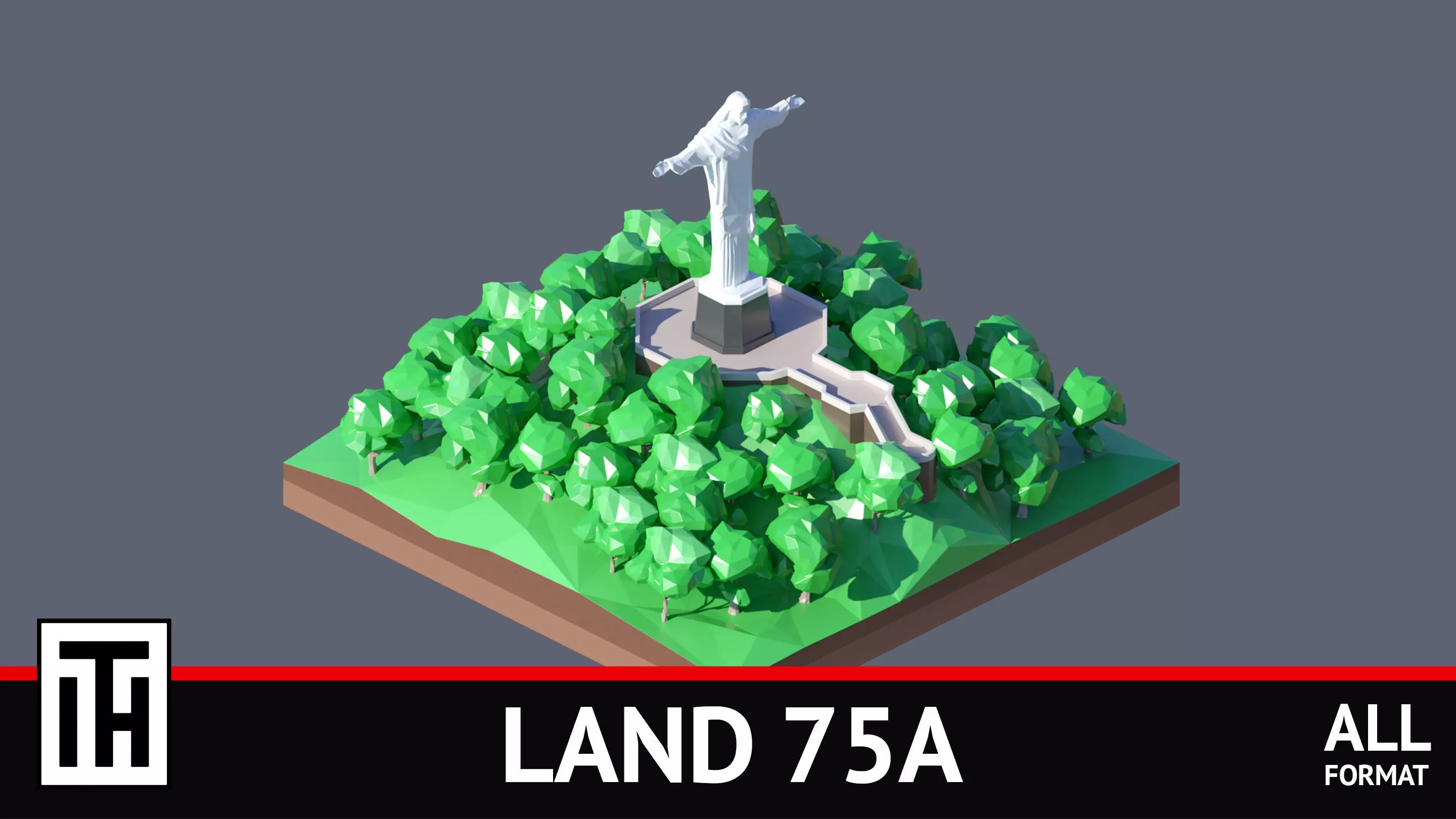 • landscape, mountainous terrain, grass, trees, bushes, statue of Jesus.