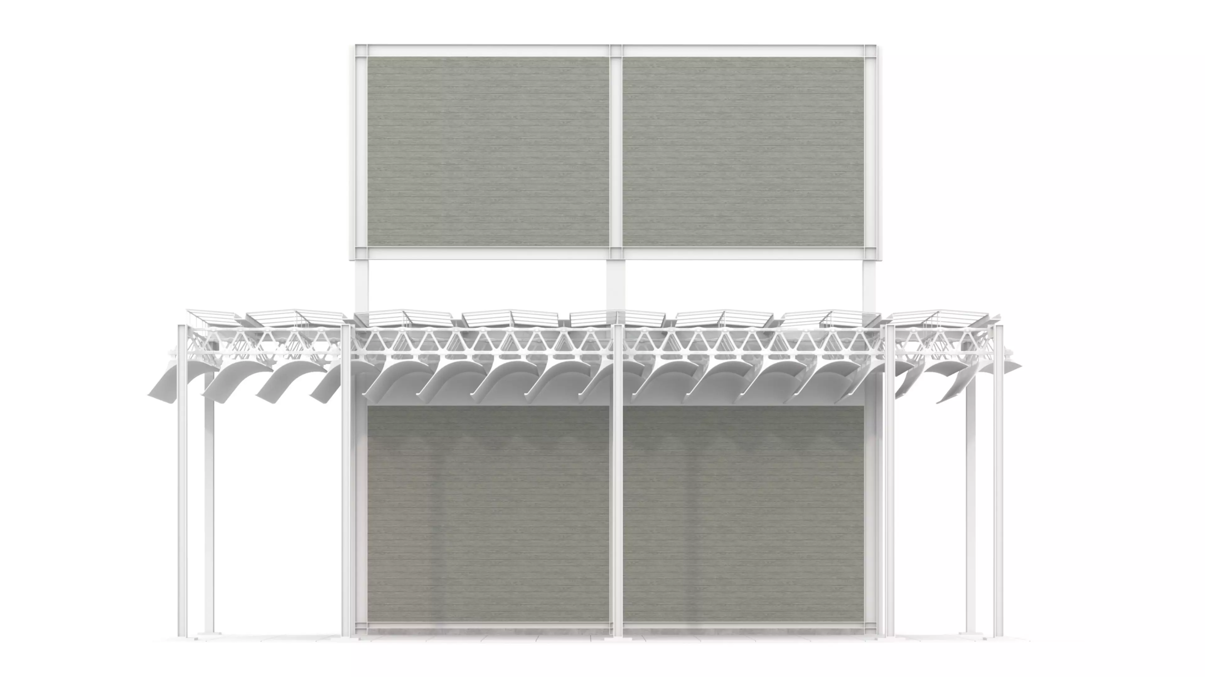3dsmaxEach group of elements matching the layers in the skp file is now saved as a different layers (glass panels, leaves, posts, truss). For overwriting options and applying materials it makes it simpler to select objects. Identical elements have been made into instances.Background is plain whiteCameras are set up according to the renders, left with all the settingsLights also, a lightmix file (vray 5 needed to apply it) is attached to get back the same result if necessary. One texture made for the wood facade, in the package, material editor contains white paint, glass and wireframe, and a hdri that's also included.