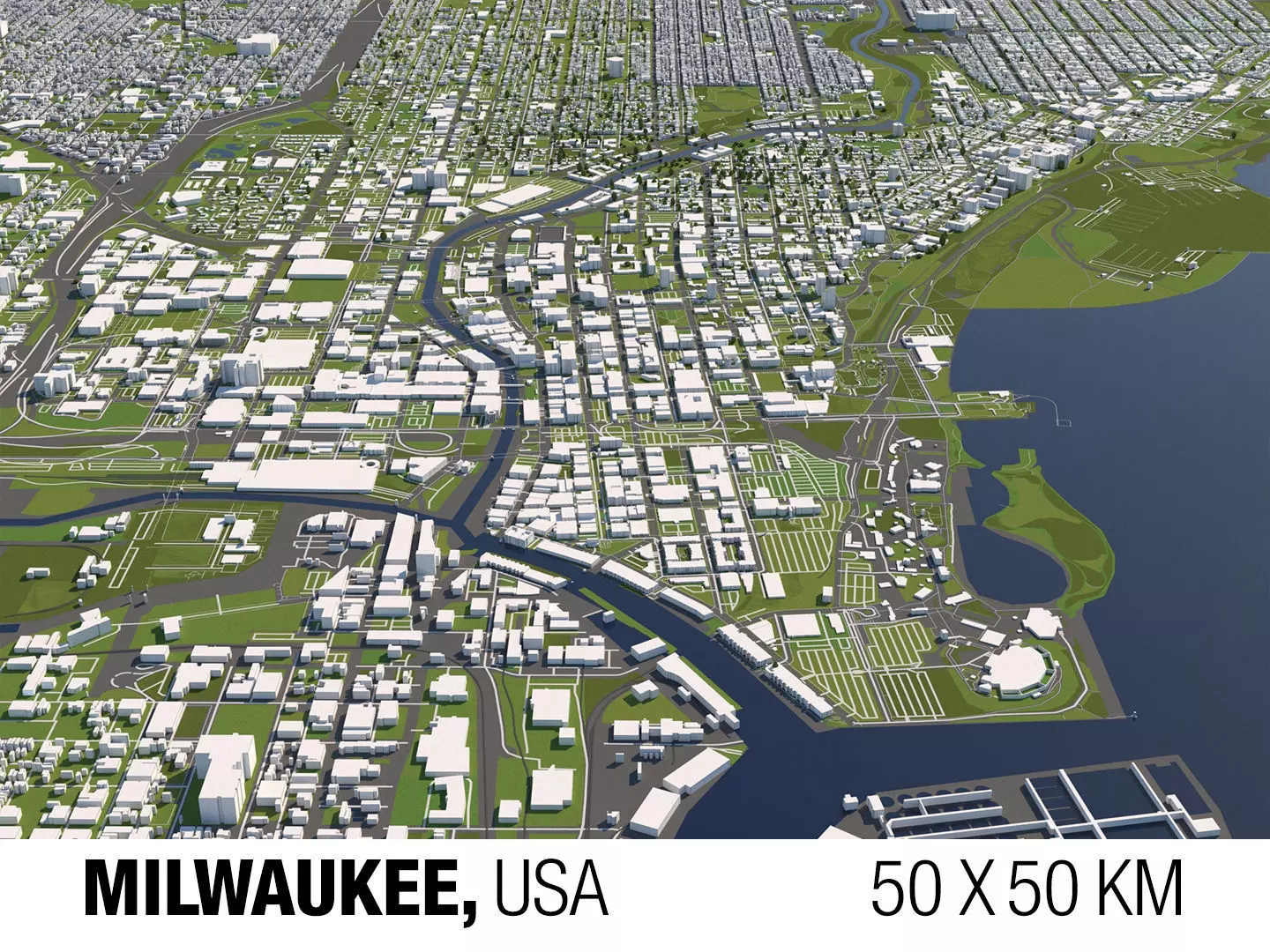 A DETAILED 3D MODEL CITY MAP OF MILWAUKEE, WISCONSIN, USA: