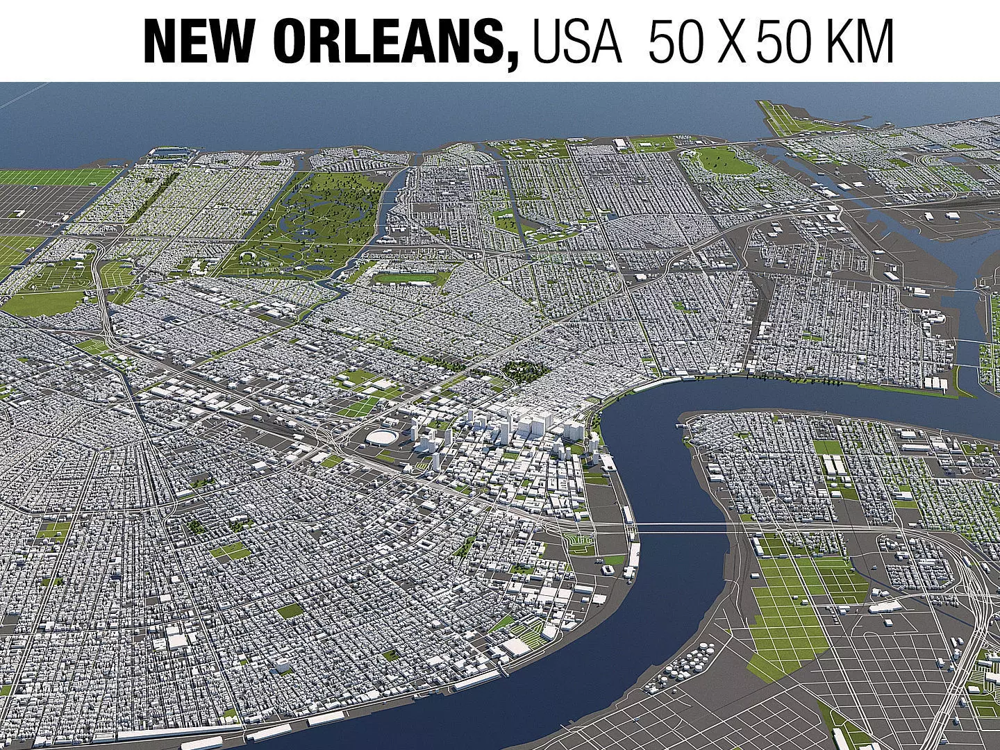 A DETAILED 3D MODEL CITY MAP OF NEW ORLEANS: