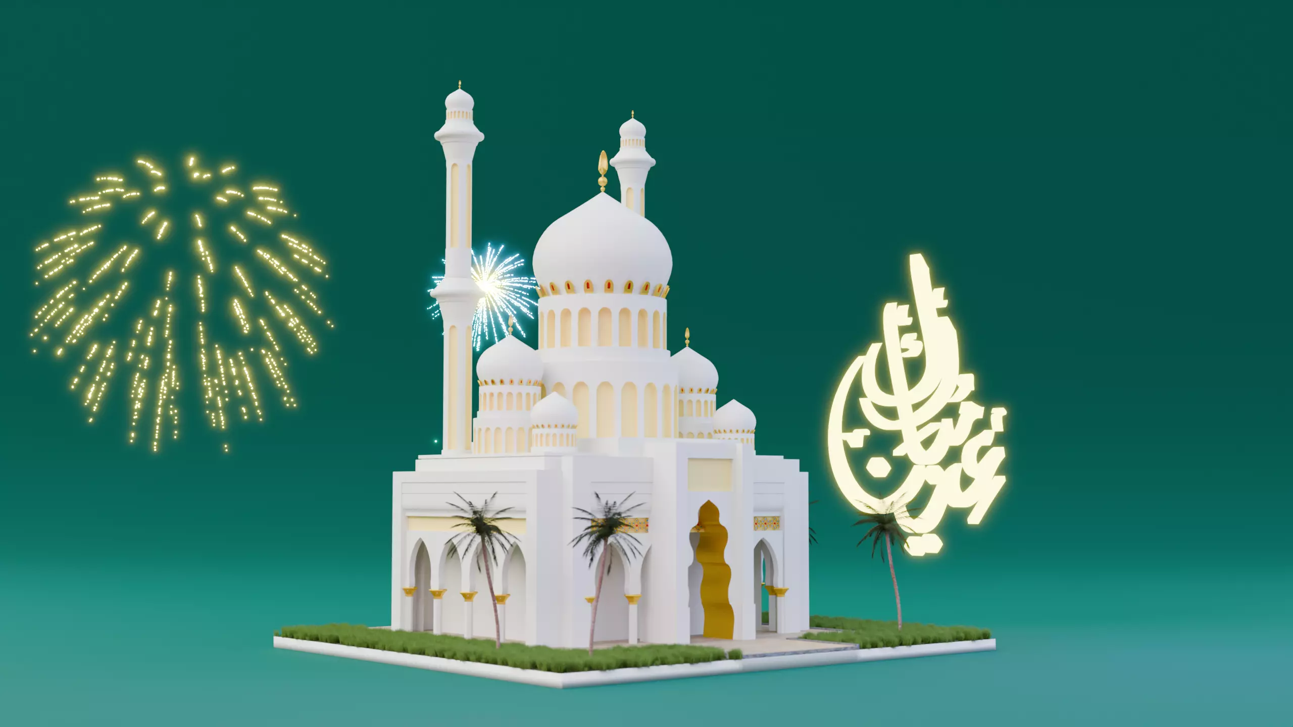 This 3D model features a stylized low-poly mosque inspired by Middle Eastern architecture, perfect for use in game development, animations, and Islamic-themed architectural visualizations. The structure includes a large central dome, four towering minarets, and several smaller domes that add a majestic touch. Details such as the ornate Moorish-style entrance, arched pillars, and golden decorative elements enhance the visual appeal. The model also includes a simple environment with palm trees and grass, making it suitable as a full scene asset. Optimized for performance, this model is ideal for mobile games, VR/AR applications, or educational content. Clean topology and lightweight geometry ensure smooth integration into any project. File formats are compatible with most popular 3D software.