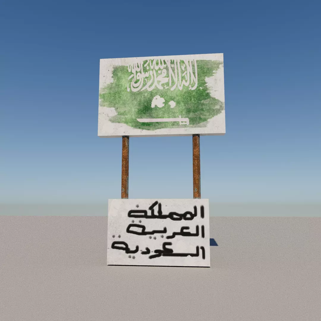 Saudi Arabia sign old CGI model created with maya and textured with substance painter.Features: