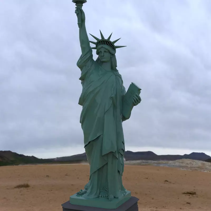 The Statue of Liberty is a colossal neoclassical sculpture on Liberty Island in the middle of New York Harbor, in Manhattan, New York City. The statue, designed by Frederic Auguste Bartholdi and dedicated on October 28, 1886, was a gift to the United States from the people of France. The statue is of a robed female figure representing Libertas, the Roman goddess of freedom, who bears a torch and a tabula ansata (a tablet evoking the law) upon which is inscribed the date of the American Declaration of Independence, July 4, 1776. A broken chain lies at her feet. The statue is an icon of freedom and of the United States: a welcoming signal to immigrants arriving from abroad.