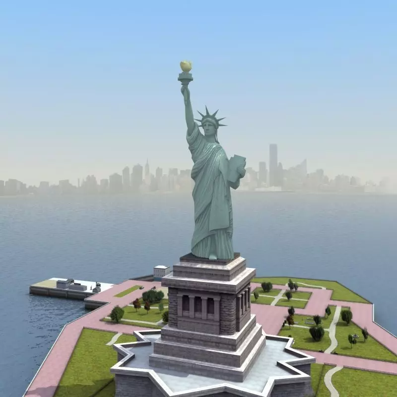Detailed 3D model of Statue-of-Liberty, New York City, plus all of Liberty Island and surrounding waterway.