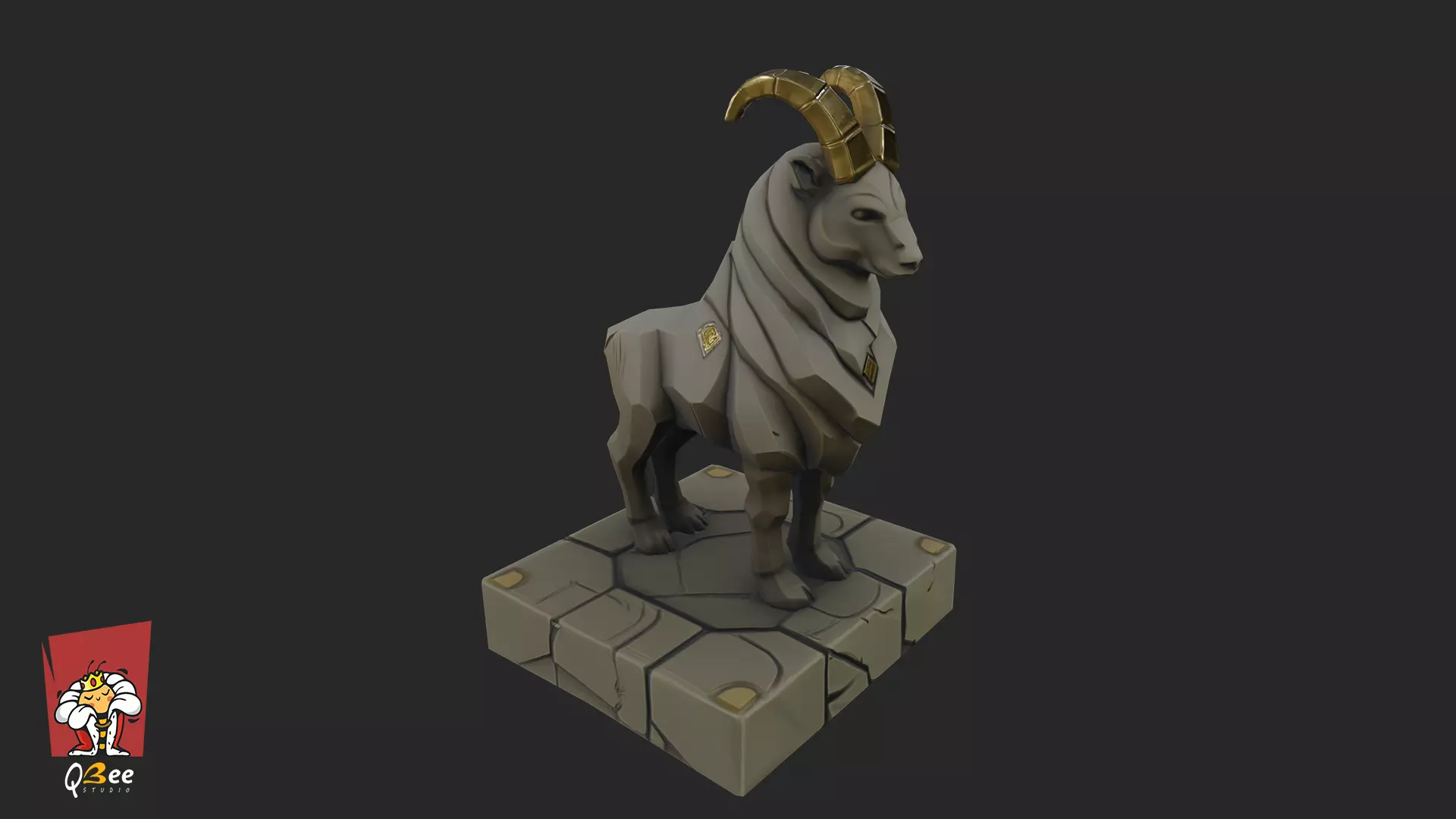 • Stylized Goat Sculpture: Clean, geometric forms with a heroic stance, blending realism and stylization for a strong visual identity.