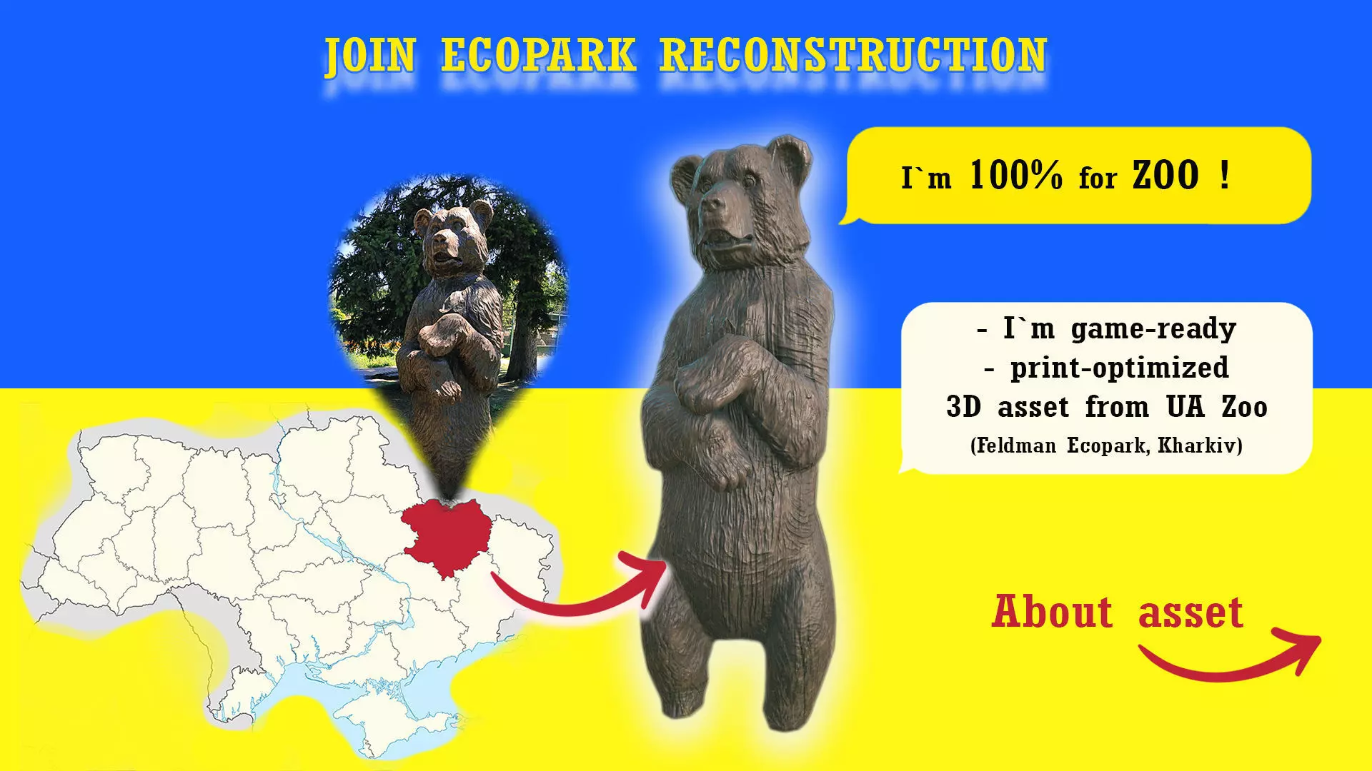 Created to gain support for animals suffered from Russian attack on Ukrain. 100% of purchase goes for reconstruction of FeldmanEcopark.Includes: