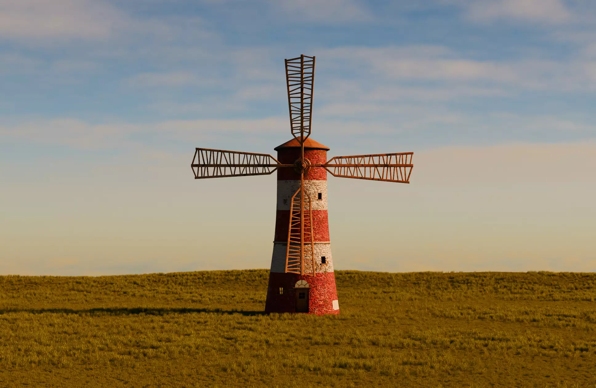 Tower mill model built in Blender and rendered with Cycles, with PBR materials made in substance painter, UV unwrapped and optimized. Game-Ready with single LOD. No tessellation is present.