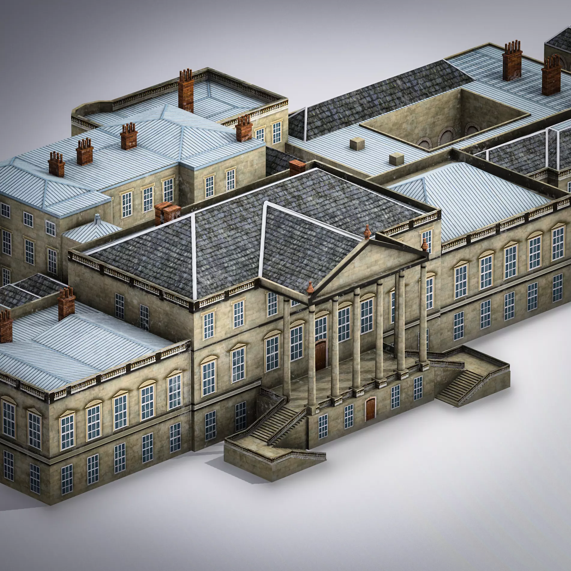 Low poly model of a Wentworth Woodhouse, it is non-PBR with 4k resolutions. This is a low poly model with 2261 polys. This is an ideal opportunity to decorate your scene with an object that will be in other plans, and that would be seen from a long distance. All dimensions are by ratio 1:1. The model has 1 daylight mode and 1 night mode map.