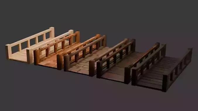 5 Wooden BridgeHighly Detailed Game Ready Low Poly 3D ModelThis pack includes 5 wooden bridge models with different textures , designed for game environments and real-time projects.Each bridge is optimized, cleanly modeled, and suitable for use in Unity, Unreal Engine, and other 3D engines.