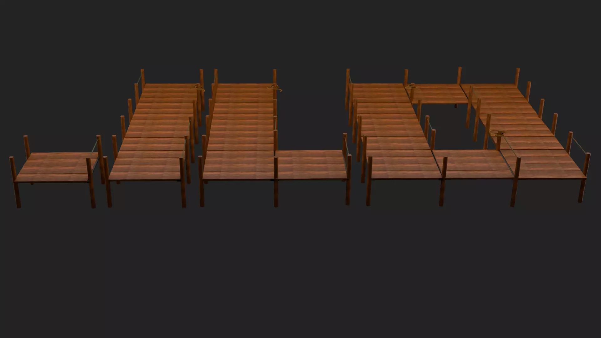 Wooden Dock and Bridge Modular Pack Low-poly 3D model