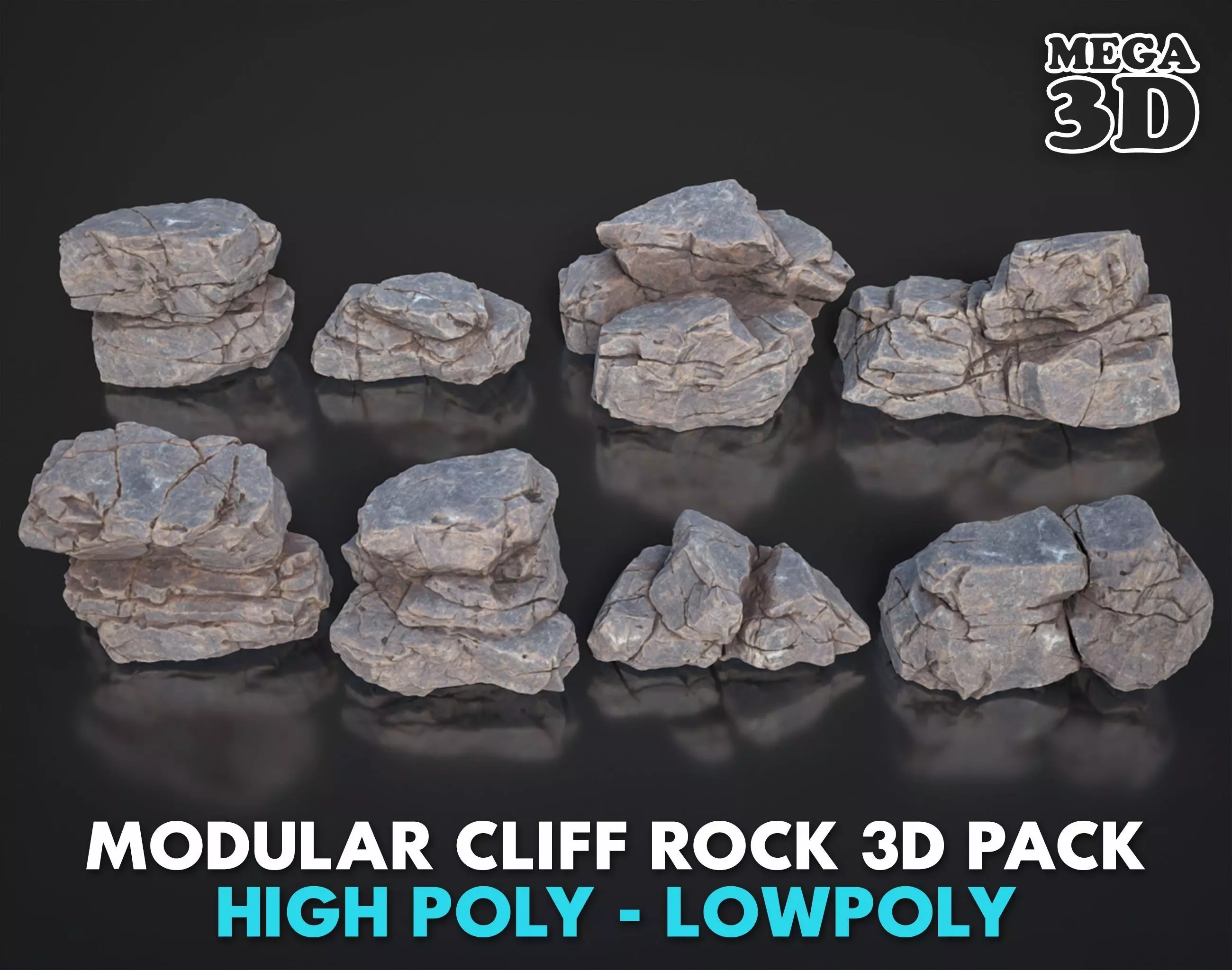 This premium 3D asset pack includes 8 highly detailed Modular Cliff Rocks.