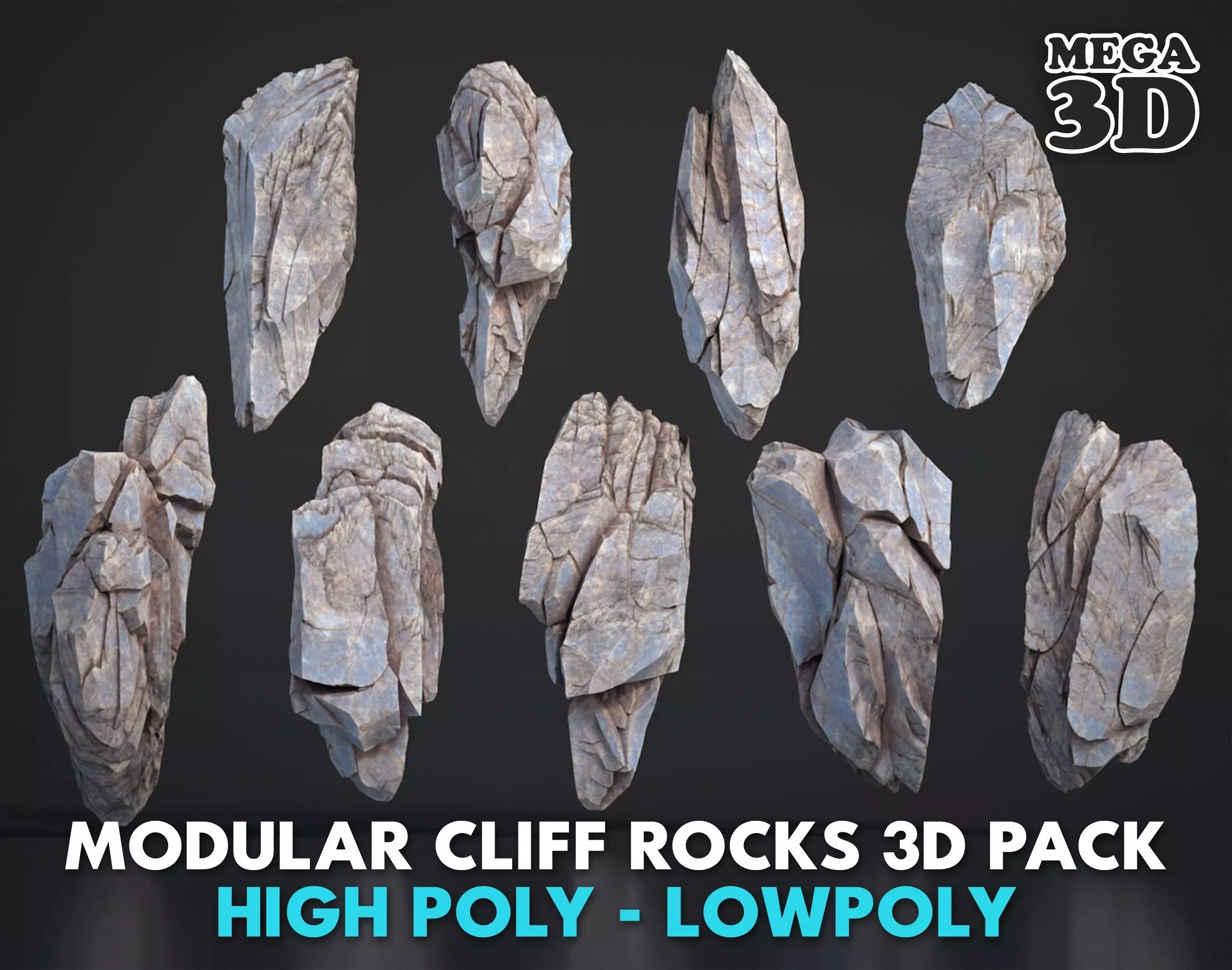 This premium 3D asset pack includes 9 highly detailed Modular Cliff Rocks.