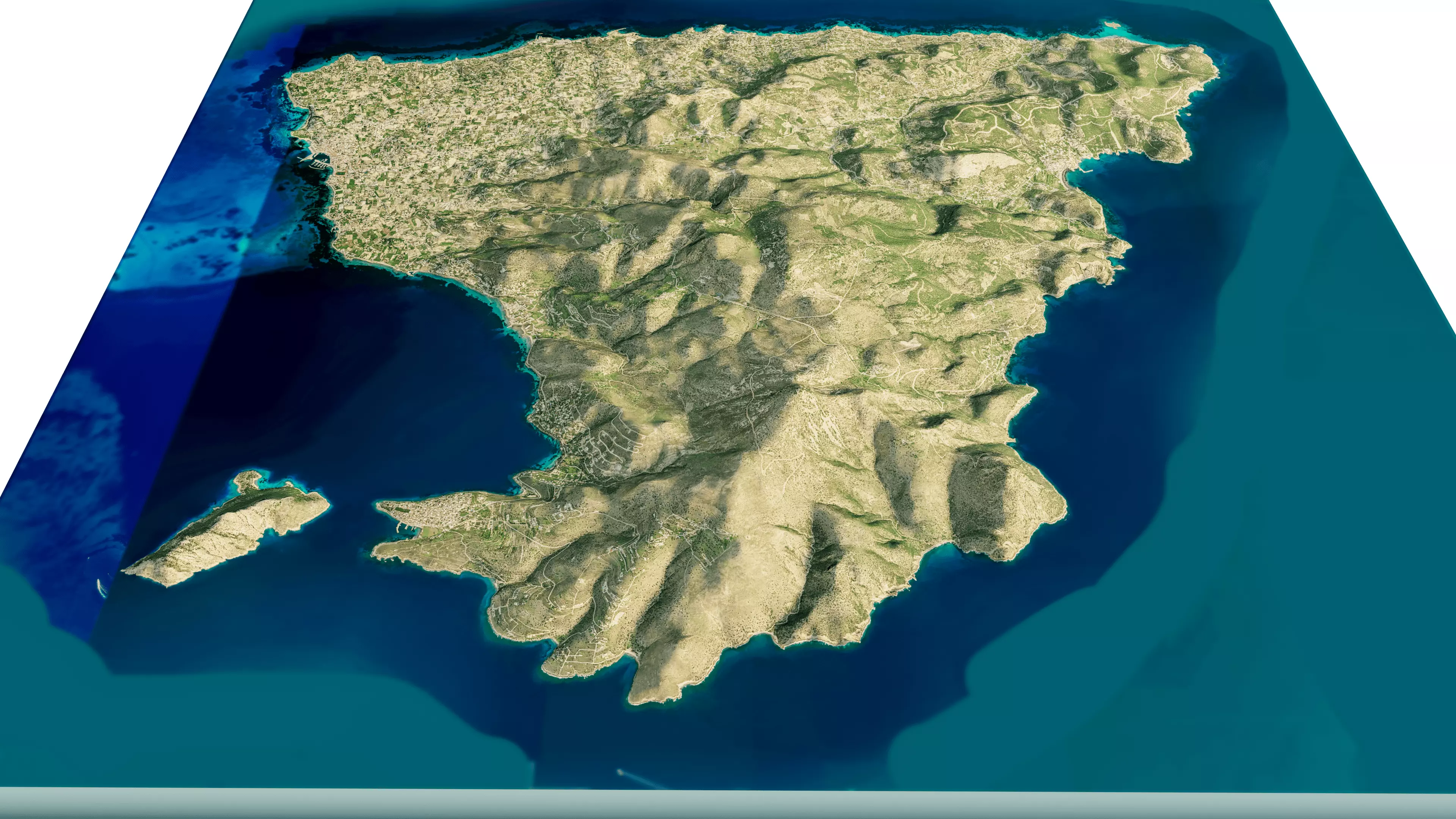 3d model landscape of Aegina Island, Saronic Islands, Attica, Aegean Sea, Greece.