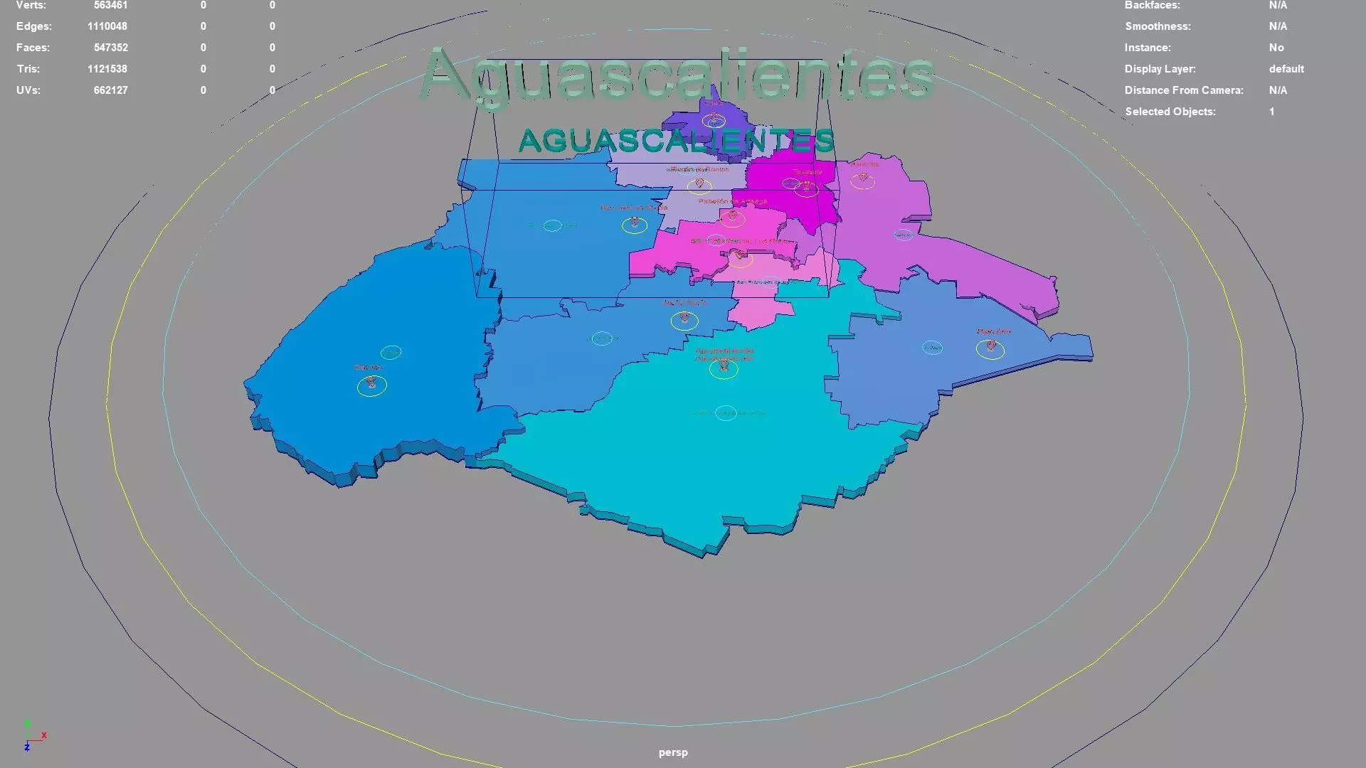 Aguascalientes regions : The model is divided according to the administrative region of Aguascalientes. Each region is clearly separated so you can easily isolate it or change the colors. Names are also editable and separate.