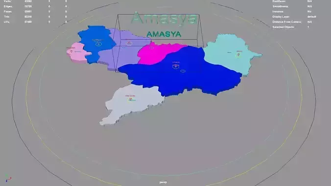 Amasya regions : The model is divided according to the administrative region of Amasya. Each region is clearly separated so you can easily isolate it or change the colors. Names are also editable and separate.