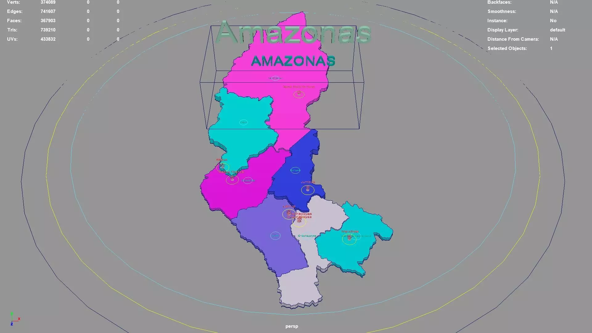 Amazonas regions : The model is divided according to the administrative region of Amazonas. Each region is clearly separated so you can easily isolate it or change the colors. Names are also editable and separate.