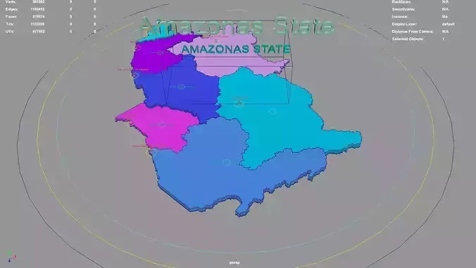 Amazonas State regions : The model is divided according to the administrative region of Amazonas State. Each region is clearly separated so you can easily isolate it or change the colors. Names are also editable and separate.