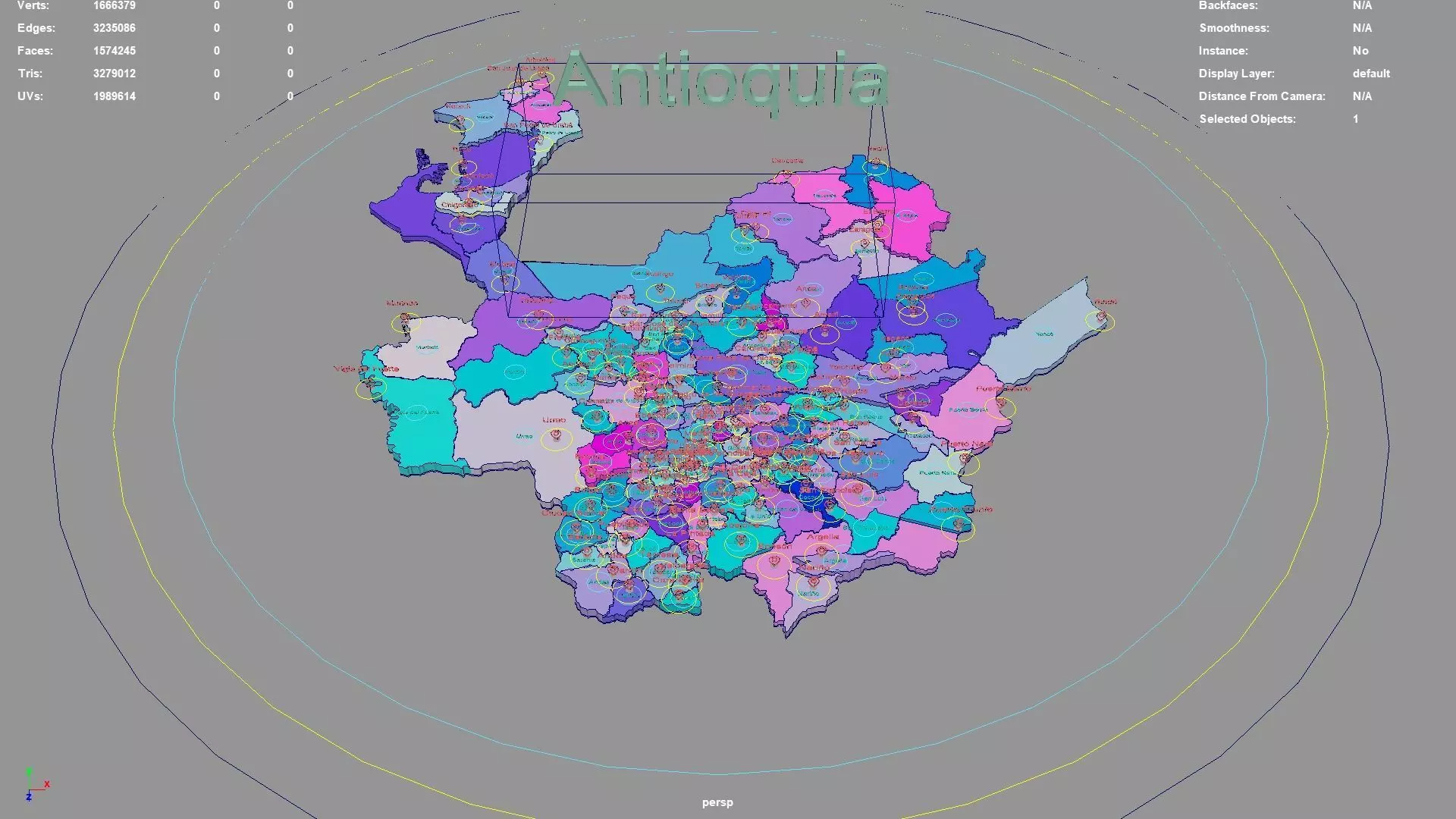 Antioquia regions : The model is divided according to the administrative region of Antioquia. Each region is clearly separated so you can easily isolate it or change the colors. Names are also editable and separate.