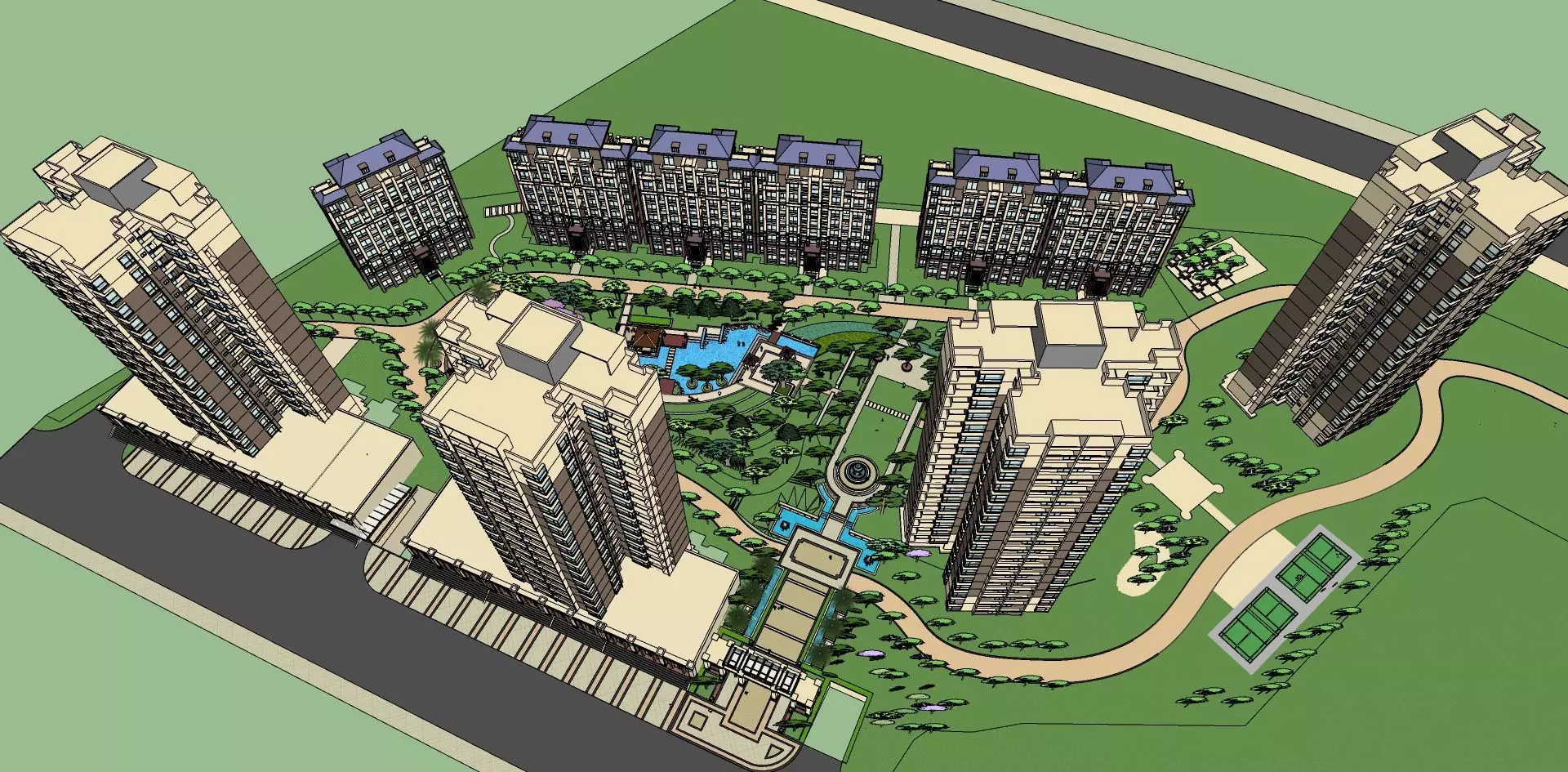 Architects and urban planners: Highlight realistic scale, accurate proportions, and the ability to integrate into larger cityscapes.Real estate developers and marketing teams: Emphasize the building's appeal to potential residents, showcasing amenities and rooftop terraces.3D artists and filmmakers: Focus on high-quality textures, detailed facades, and versatility for various creative projects.Key features: