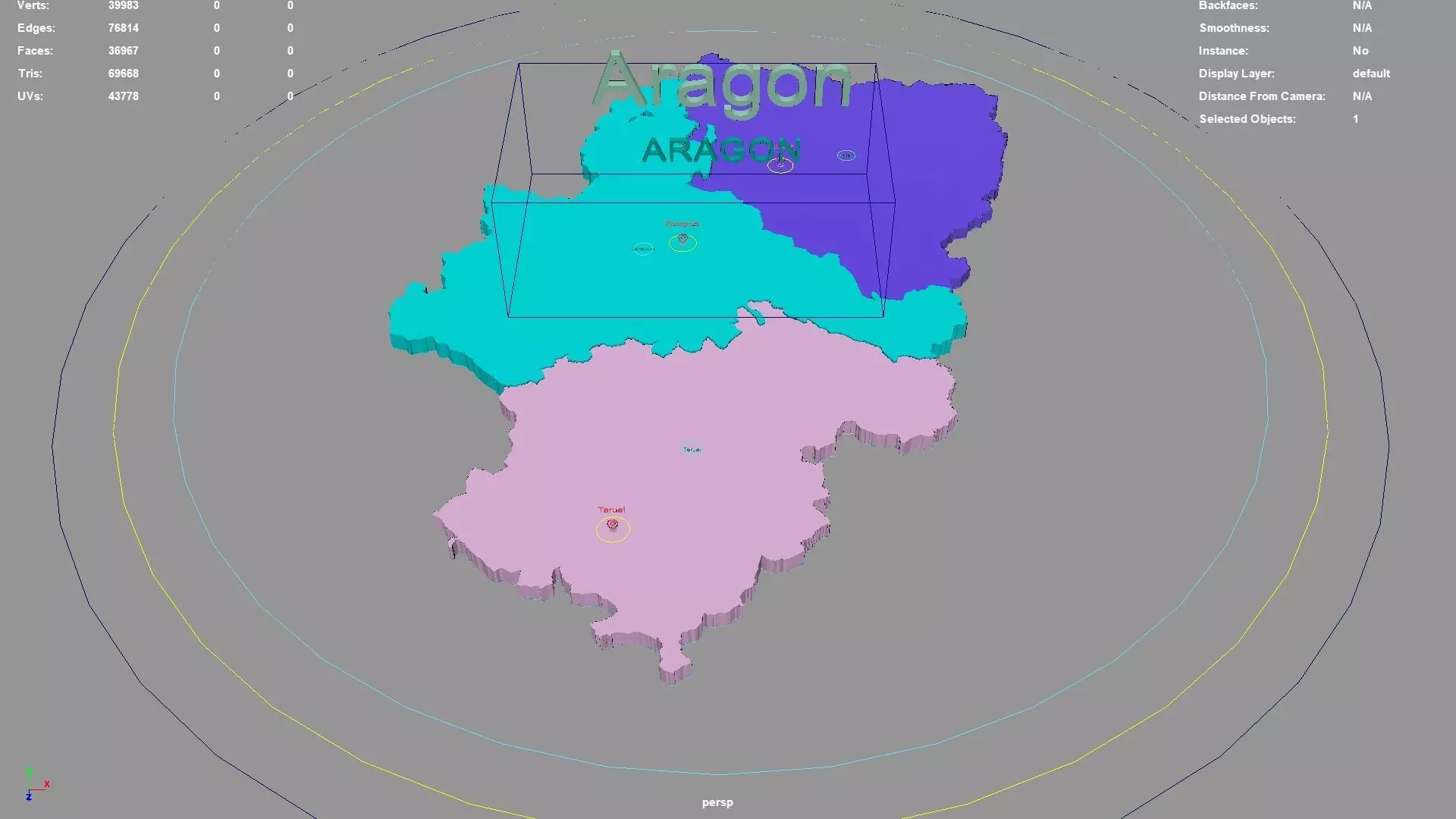 Aragon regions : The model is divided according to the administrative region of Aragon. Each region is clearly separated so you can easily isolate it or change the colors. Names are also editable and separate.