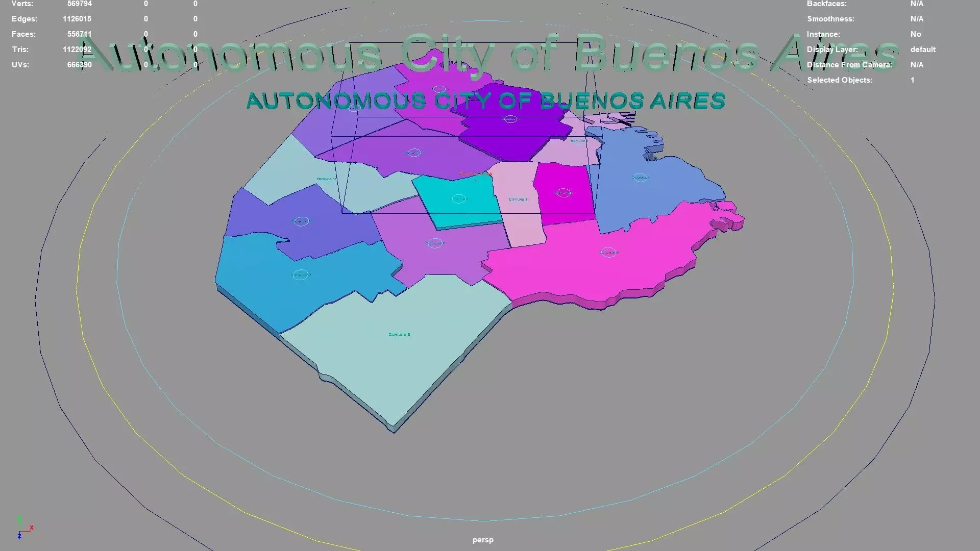 Autonomous City of Buenos Aires, Argentina .map,region,geography,political,geographic,administrative division,city Landscape,3D model.