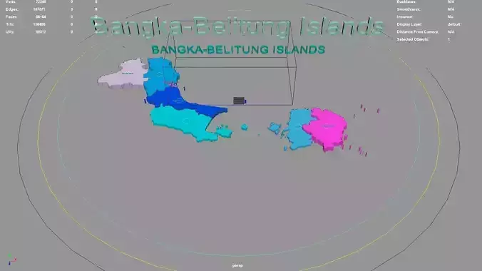 Bangka-Belitung Islands regions : The model is divided according to the administrative region of Bangka-Belitung Islands. Each region is clearly separated so you can easily isolate it or change the colors. Names are also editable and separate.