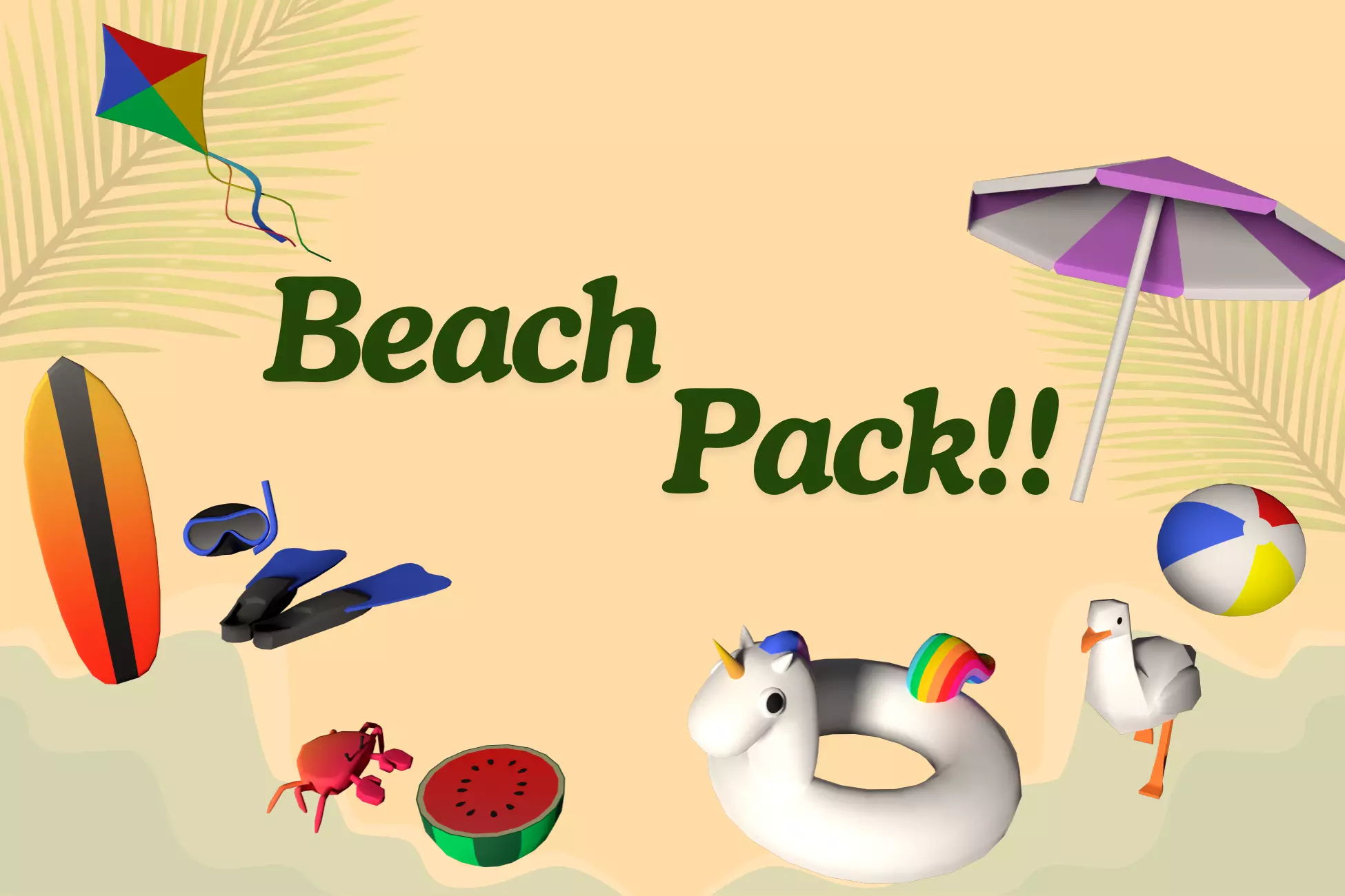Models:Seagull with walking animationCrab with walking animationLifeguard Tower (9 color variations)Van (7 color variations)JetSki (7 color variations)PedalBoat (7 color variations)Hammock (7 color variations)FittingRoom (7 color variations)WindsurfBoard (7 color variations)Kayak (3 color variation)Kayak paddleBuoy x3 (1 to 3 color variations)SurfBoard (19 color variations)Picnic Table BasicLifeguardChair (2 color variations)Lifesaving Float x2BoatShowerPortableRefrigerator x 3BonfirePergola (7 color variation)PicnicTable with Umbrella x2 (7 color variation each one)LoungerFloat (7 color variation)Float Basic (14 color variation)Flamingo Float Duck Float x2Unicorn FLoatDonut FloatKite x3 (from 3 to 7 color variation each)Racket (7 color variation)Racket ball (7 color variation)Can (7 color variation)Fishing Rod (7 color variation)Bike (7 color variation)Skate Scooter (7 color variation)Swimming Fins (7 color variation)Snorkel Glasses (7 color variation)Lounger x2 (7 to 8 color variation)Hats x3 (7 color variation each one)Bags x3 (7 color variation each one)Sunglasses (8 color variation)Flip Flops (7 color variation)Shovel (7 color variation)Rake (7 color variation)Cube (7 color variation)Ball (8 color variation)Chair x2 (7 to 11 color variation)Towel (7 color variation)Umbrella x3 (7 color variation each one)Rocks x4 (4 color variation each one)Conch x2WatermelonCoconut x3VolleyBall (5 color variation)Ice Cream x2 (3 color variation each one)Starfish x2 (2 color variation each one)SunscreenSandCastle x2Drinks x9SeaWeed x3CoralLighthouseBeach Bar x2Beach BedWalkway (3 color variation)Dock x2 (3 color variation each one)Trash Can x2 (4 color variation each one)Palm x5Big Boat