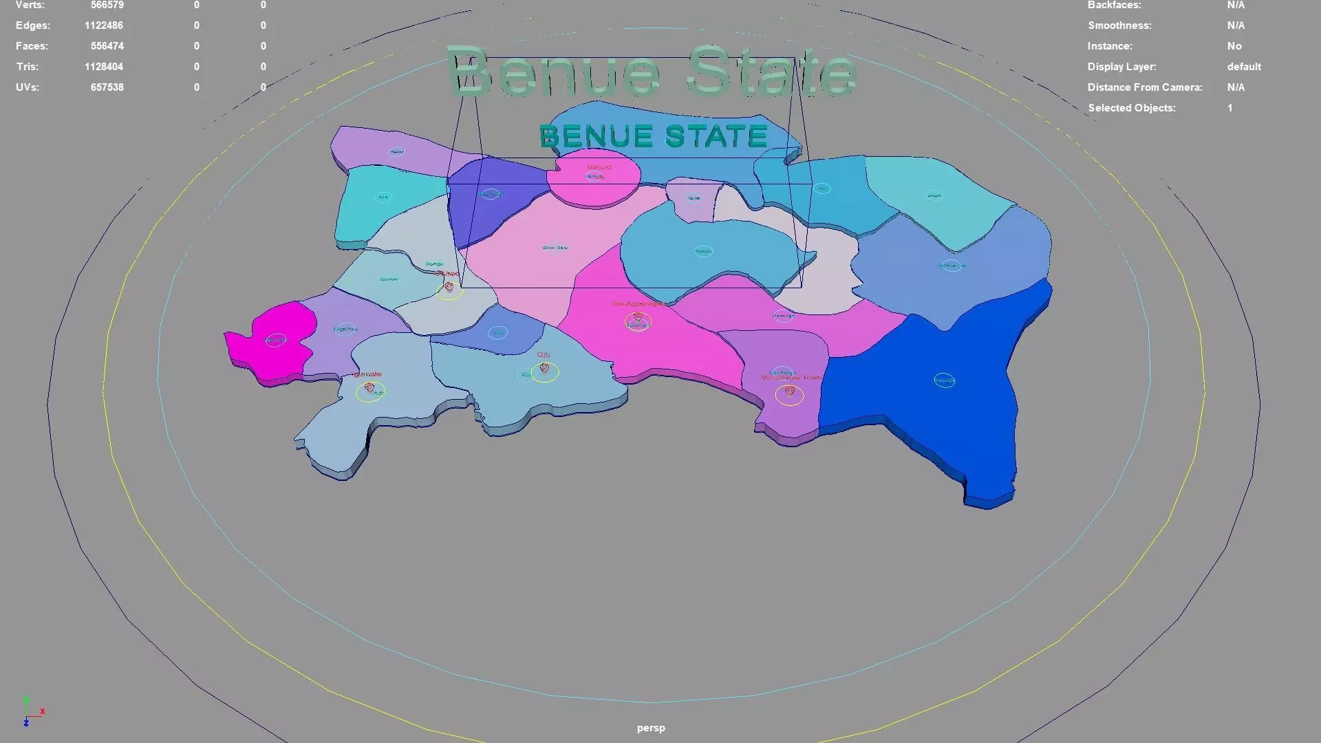 Benue State regions : The model is divided according to the administrative region of Benue State. Each region is clearly separated so you can easily isolate it or change the colors. Names are also editable and separate.