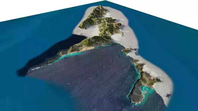 Bequia island full 3d model terrain. 3d model of the Island of Bequia with its landscape of mountains, beaches and forests