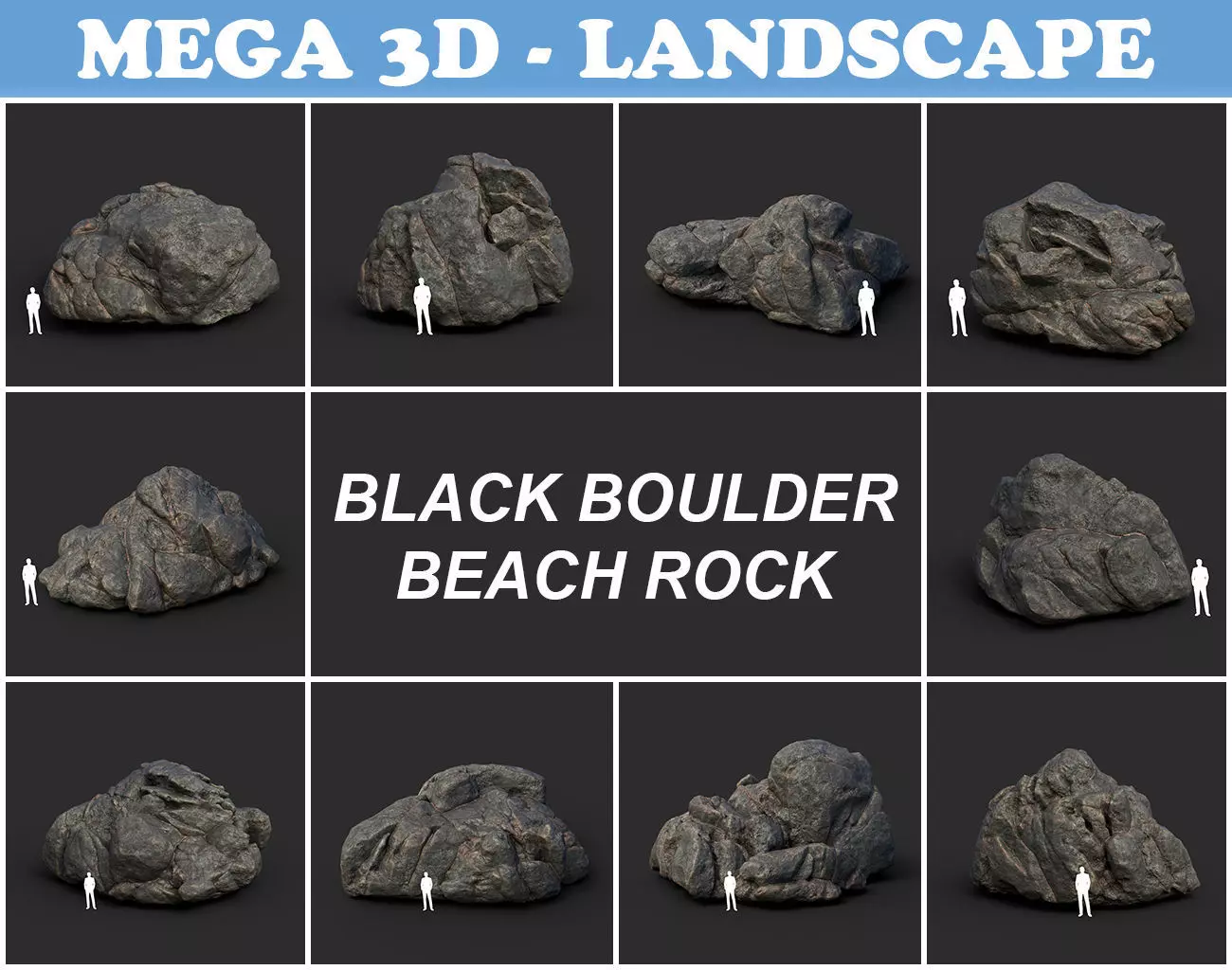 Black Boulder Beach Rock Collection 210731 Low-poly 3D model