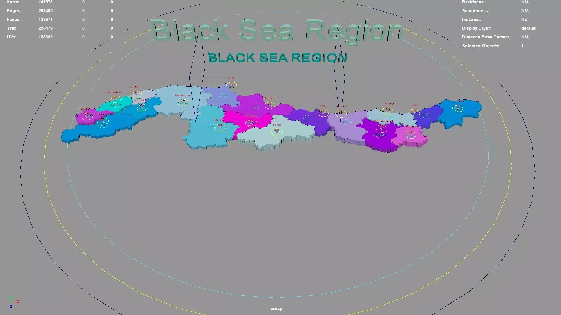 Black Sea Region regions : The model is divided according to the administrative region of Black Sea Region. Each region is clearly separated so you can easily isolate it or change the colors. Names are also editable and separate.