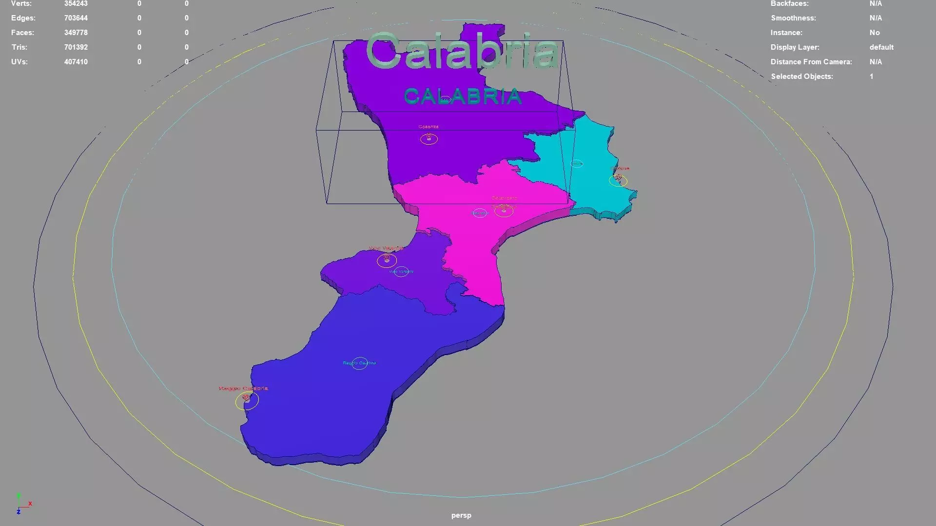 Calabria regions : The model is divided according to the administrative region of Calabria. Each region is clearly separated so you can easily isolate it or change the colors. Names are also editable and separate.