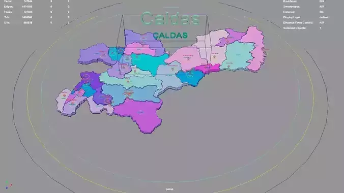 Caldas regions : The model is divided according to the administrative region of Caldas. Each region is clearly separated so you can easily isolate it or change the colors. Names are also editable and separate.