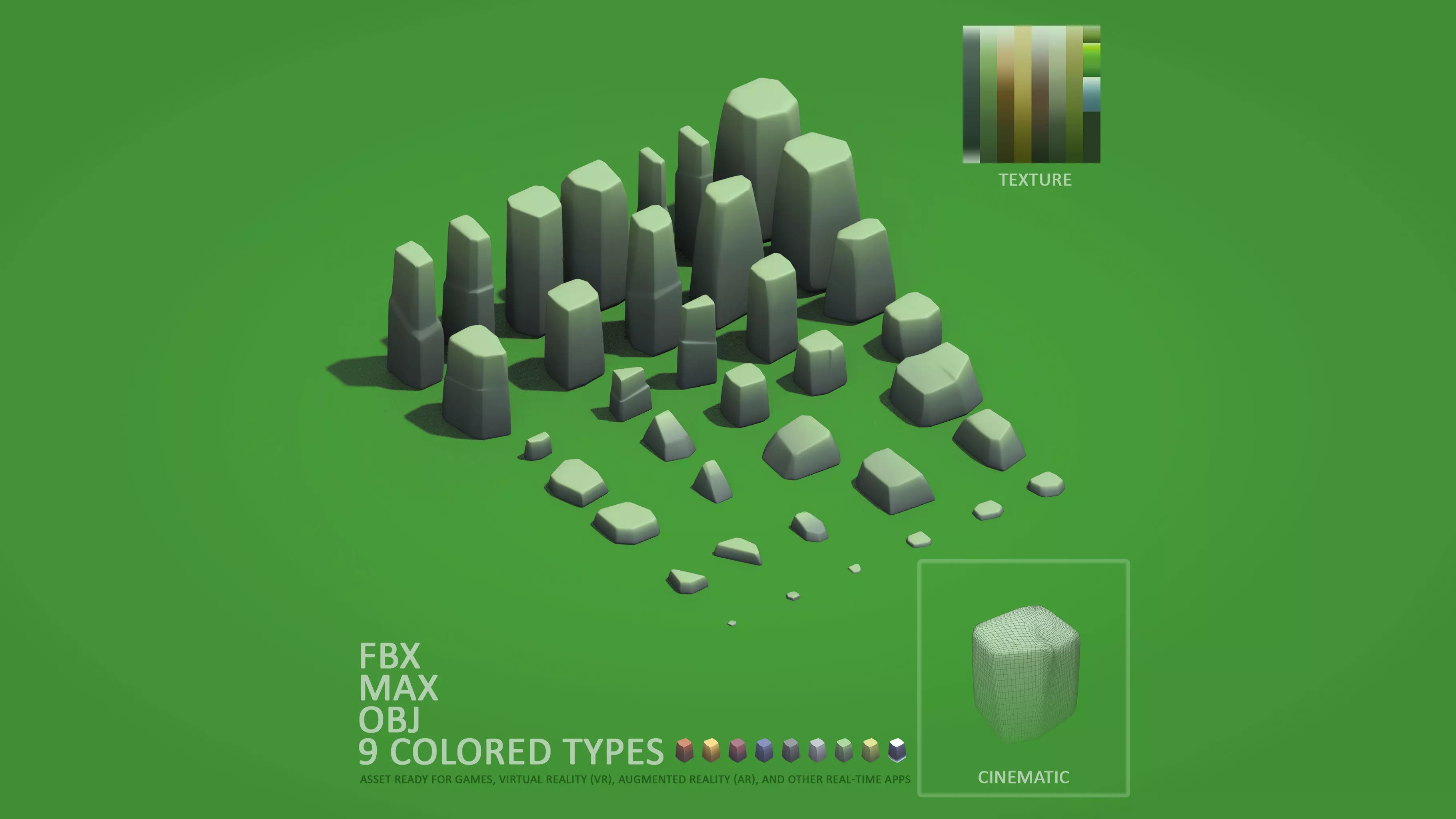 • All types of stones are exported separately also by scenes and have naming convention