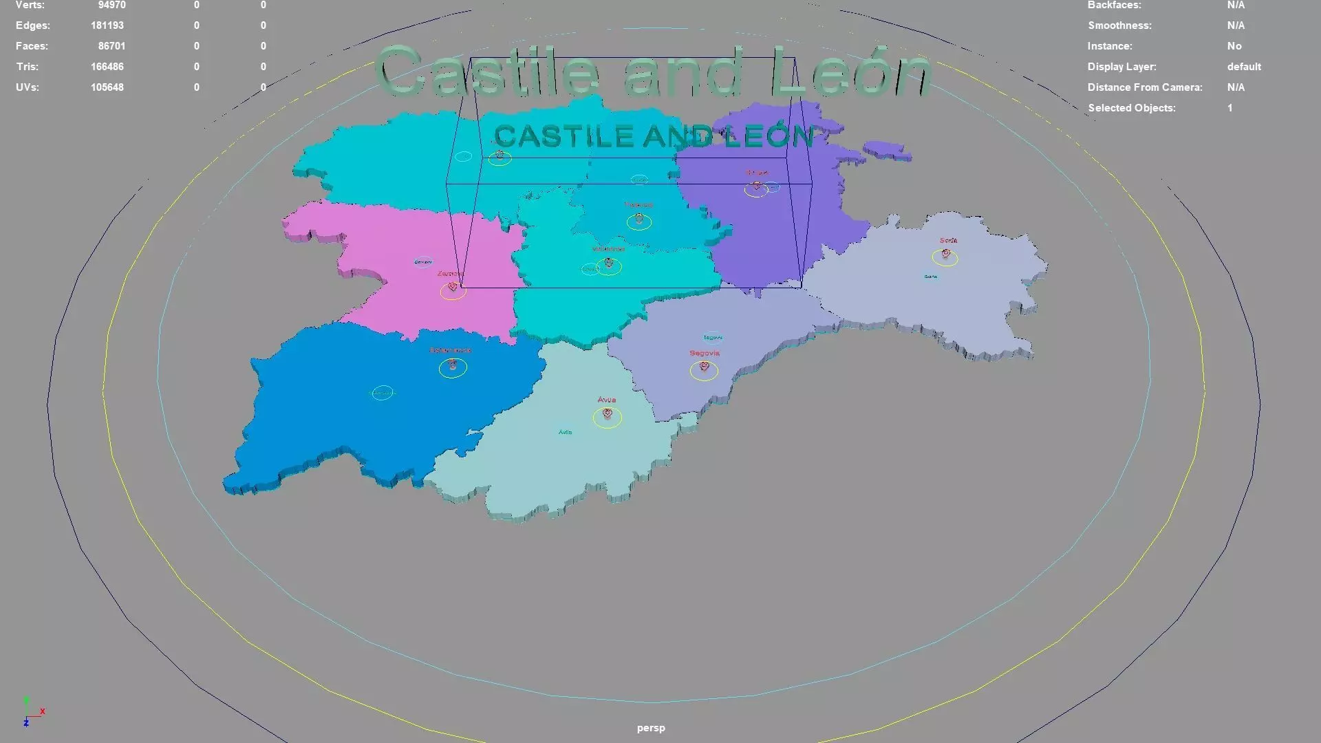 Castile and León regions : The model is divided according to the administrative region of Castile and León. Each region is clearly separated so you can easily isolate it or change the colors. Names are also editable and separate.