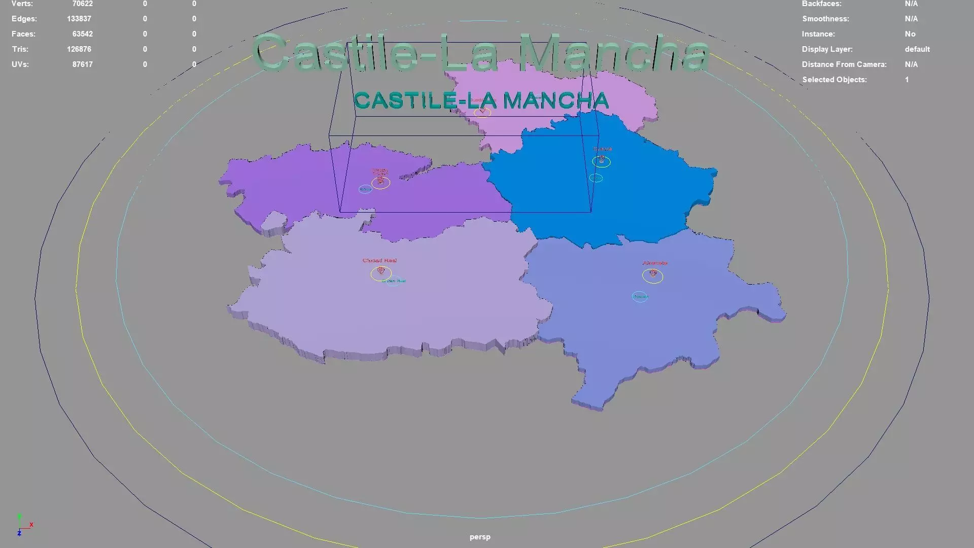 Castile-La Mancha regions : The model is divided according to the administrative region of Castile-La Mancha. Each region is clearly separated so you can easily isolate it or change the colors. Names are also editable and separate.