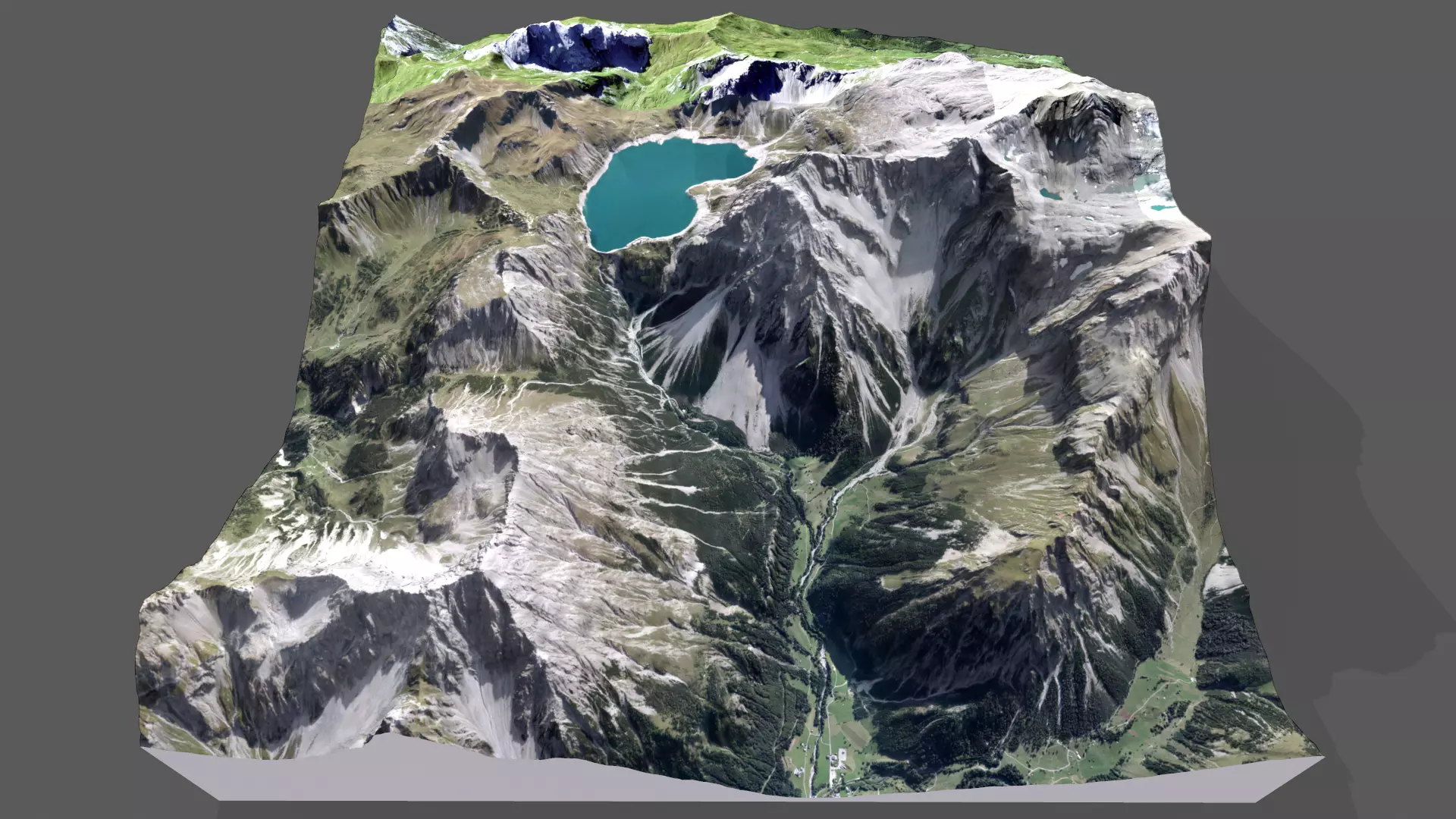 Mountain landscape and Lake Lunersee Eastern Alps AustriaPearl of the AlpsThe Lunersee, once one of the largest natural mountain lakes in the Eastern Alps, sits 1,970 meters above sea level. It is located at the end of Brandnerthal, but belongs to the municipality of Vandance in Montafon.