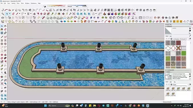 The model has material settings that define how surfaces look (color, shine, transparency, etc.).