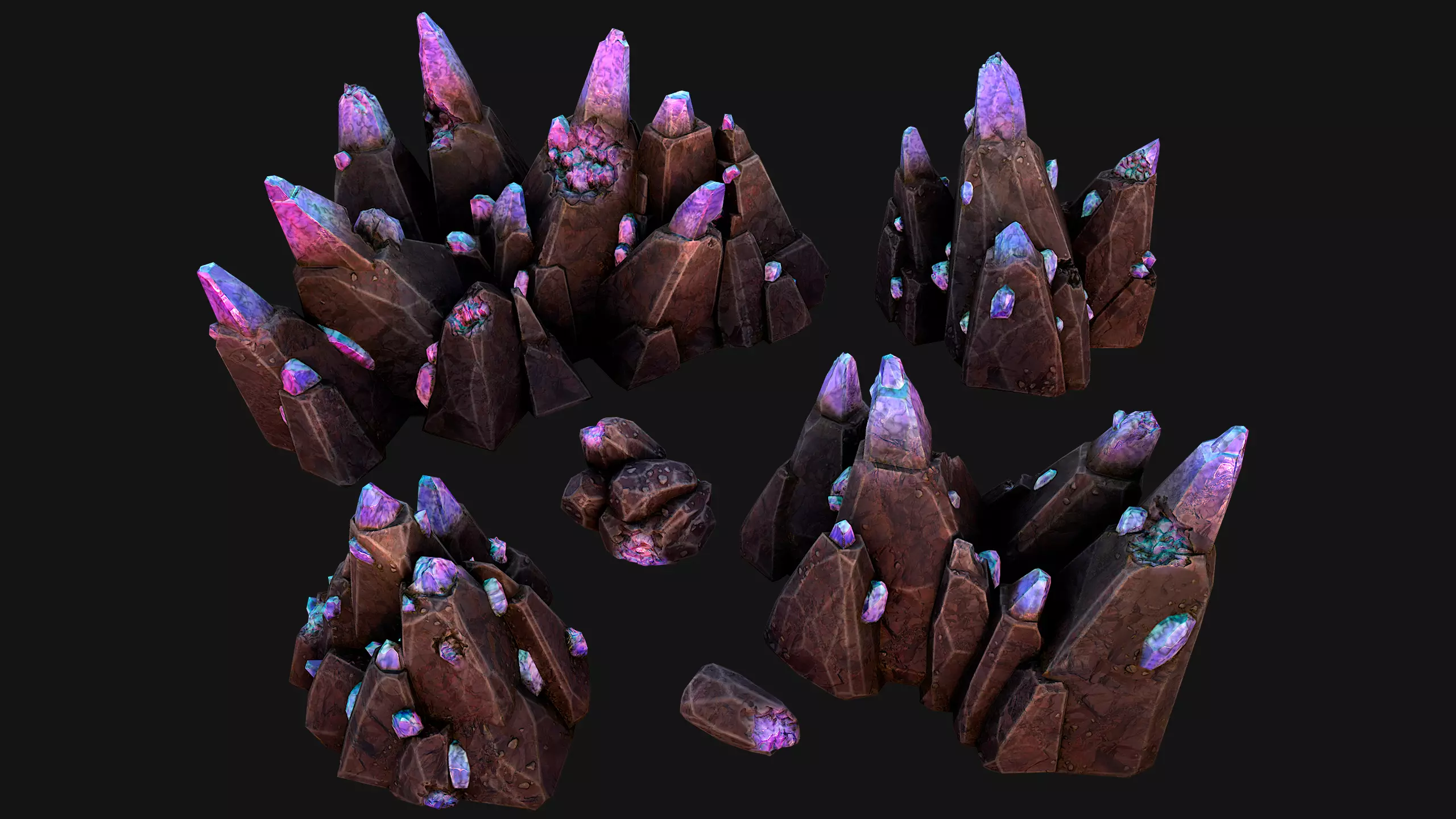 Textures 4096x4096 (tga) UV Map .Crystals have three color options: purple, pink, red.