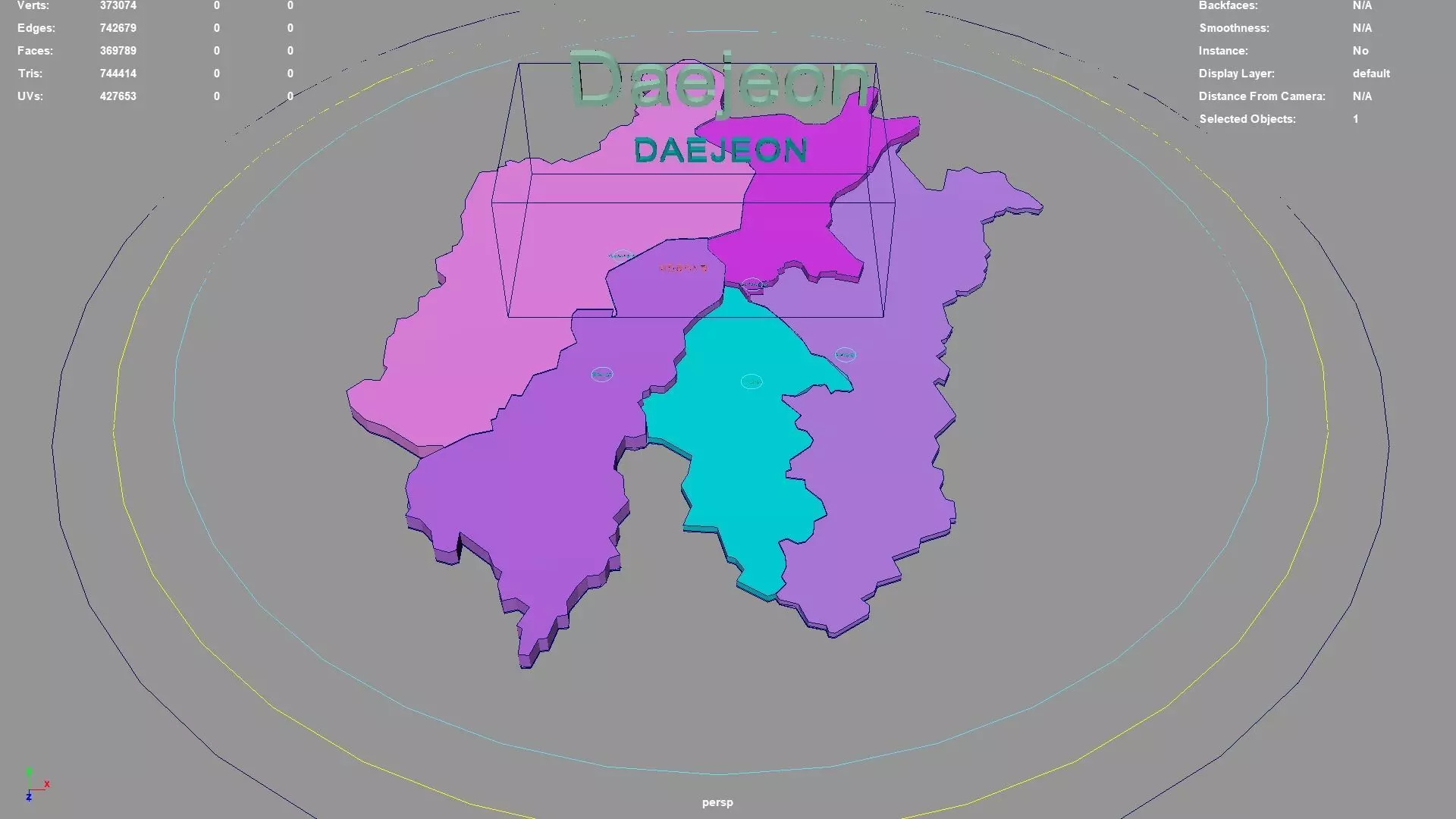Daejeon regions : The model is divided according to the administrative region of Daejeon. Each region is clearly separated so you can easily isolate it or change the colors. Names are also editable and separate.