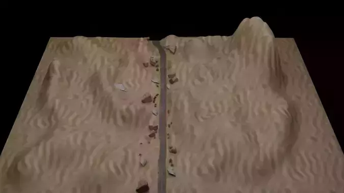 Desert Landscape with Road is a high-quality, realistic 3D environment model designed for games, cinematics, architectural visualization, virtual production, simulations, and immersive experiences. This scene captures the vast openness of an arid desert environment featuring a long, stretching road that cuts through sandy terrain, subtle elevation changes, and natural desert formations. The composition is carefully balanced to create a cinematic sense of scale, isolation, and depth.The model includes detailed terrain geometry with natural sand variations, realistic texturing, and optimized topology suitable for real-time rendering or high-resolution production workflows. The road is seamlessly integrated into the landscape, making it ideal for vehicle animations, driving simulations, racing games, post-apocalyptic scenes, road trip cinematics, and open-world environments. The layout allows easy scene expansion, kitbashing, and customization depending on project requirements.This 3D asset is compatible with major 3D software and game engines, making it versatile for Unreal Engine, Unity, Blender, Maya, and other rendering pipelines. It supports physically based rendering (PBR) workflows, enabling accurate lighting, shadows, and material response under different sky and weather conditions. The scene can be used for daytime heat environments, sunset cinematic shots, dust storm simulations, or even sci-fi and stylized adaptations.