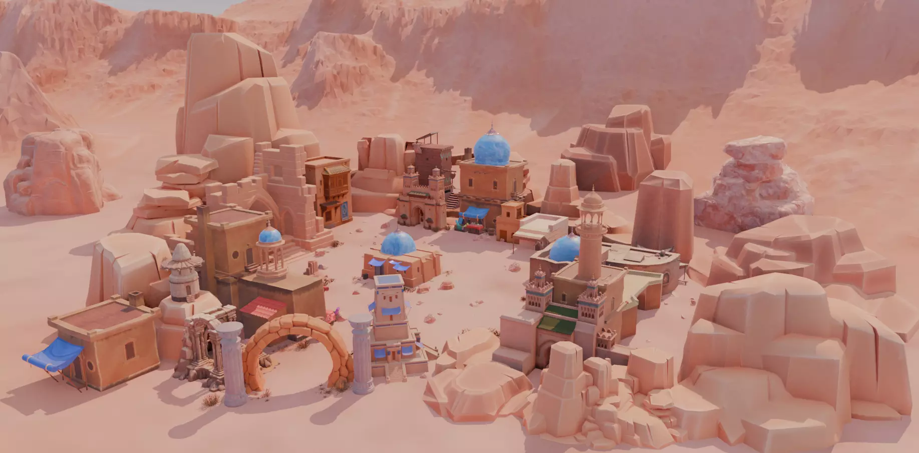 Desert Oasis Village Low-poly 3D model