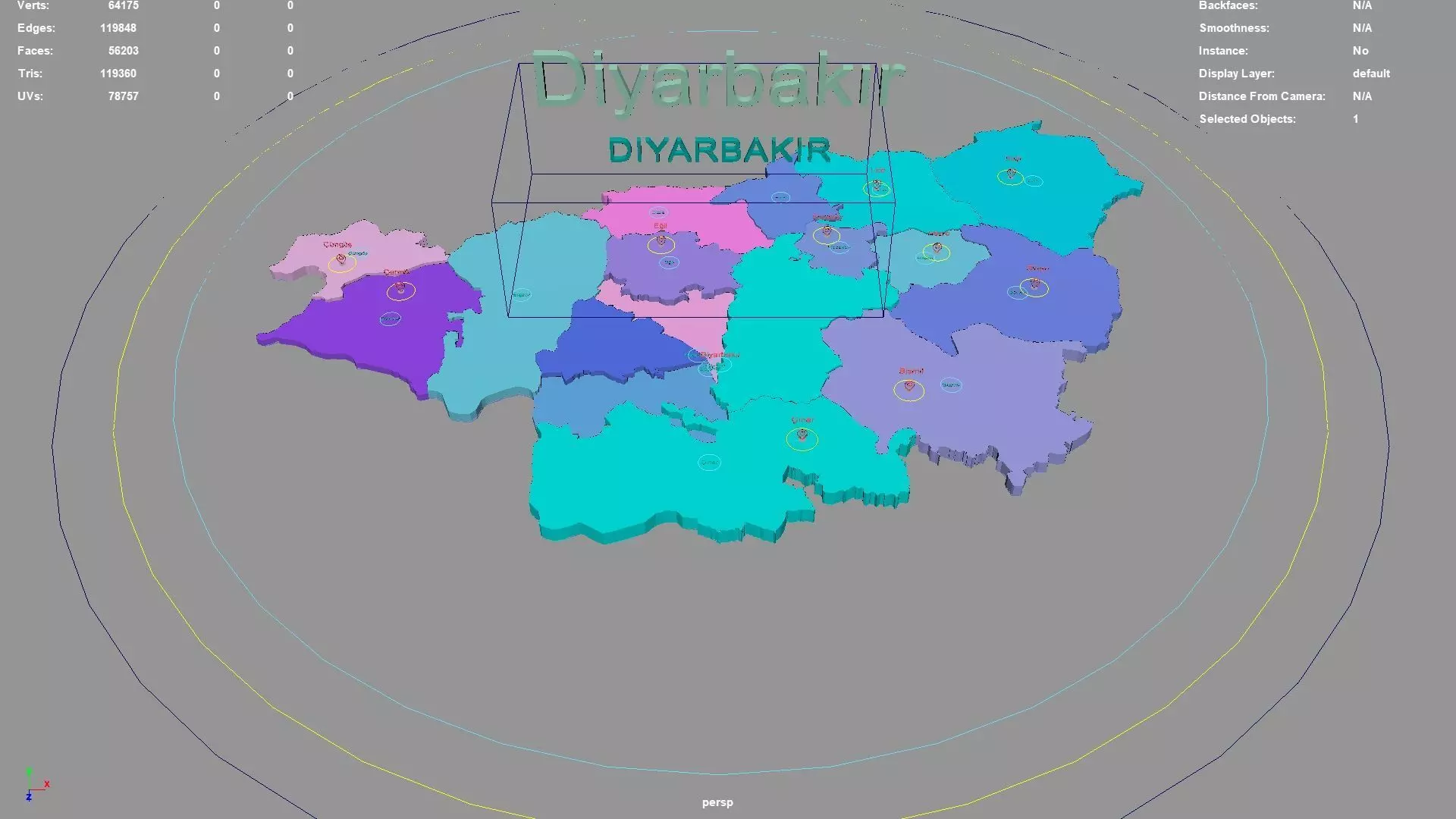 Diyarbakır regions : The model is divided according to the administrative region of Diyarbakır. Each region is clearly separated so you can easily isolate it or change the colors. Names are also editable and separate.