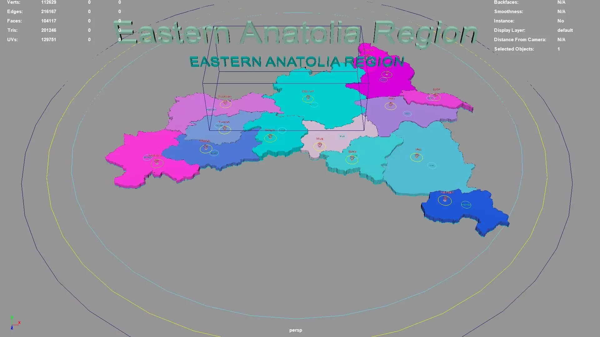 Eastern Anatolia Region regions : The model is divided according to the administrative region of Eastern Anatolia Region. Each region is clearly separated so you can easily isolate it or change the colors. Names are also editable and separate.